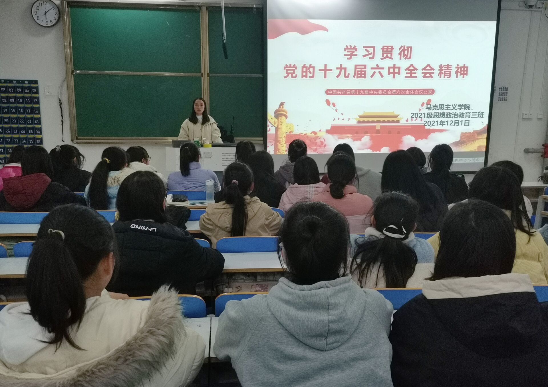 12月1日下午,金年会jinnianhuicom2021级思想政治教育三班在社科楼516召开学习党的十九届六中全会精神主题班会。2021级思想政治教育三班全体成员参加本次班会。班会由副班长王岚霄主持。