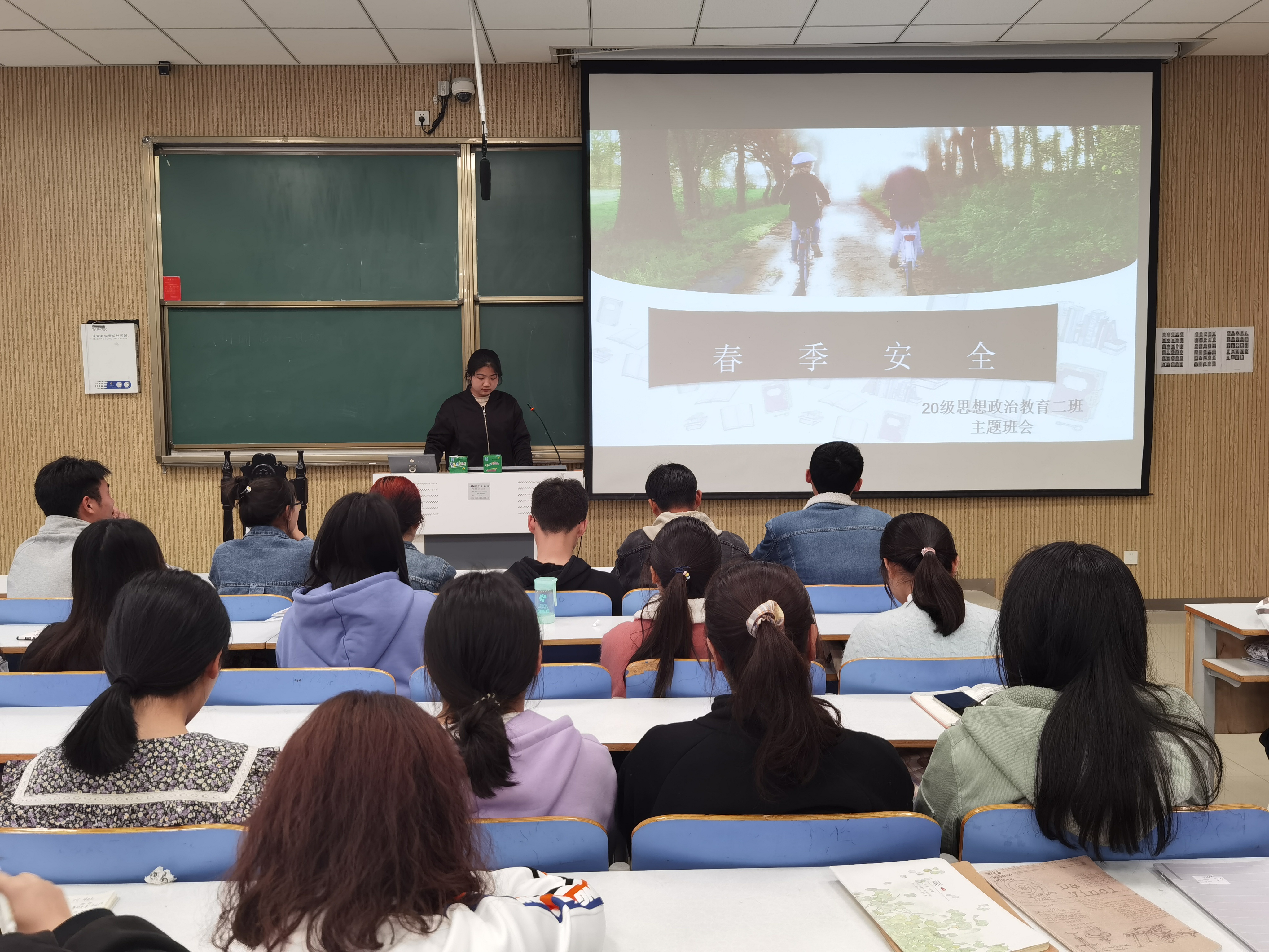 3月23日下午,金年会jinnianhuicom2020级思想政治教育二班、定向二班在社科楼515教室顺利召开春季安全主题班会。2020级思想政治教育二班、定向二班全体学生共同参与本次班会。班会由孙雪主持。