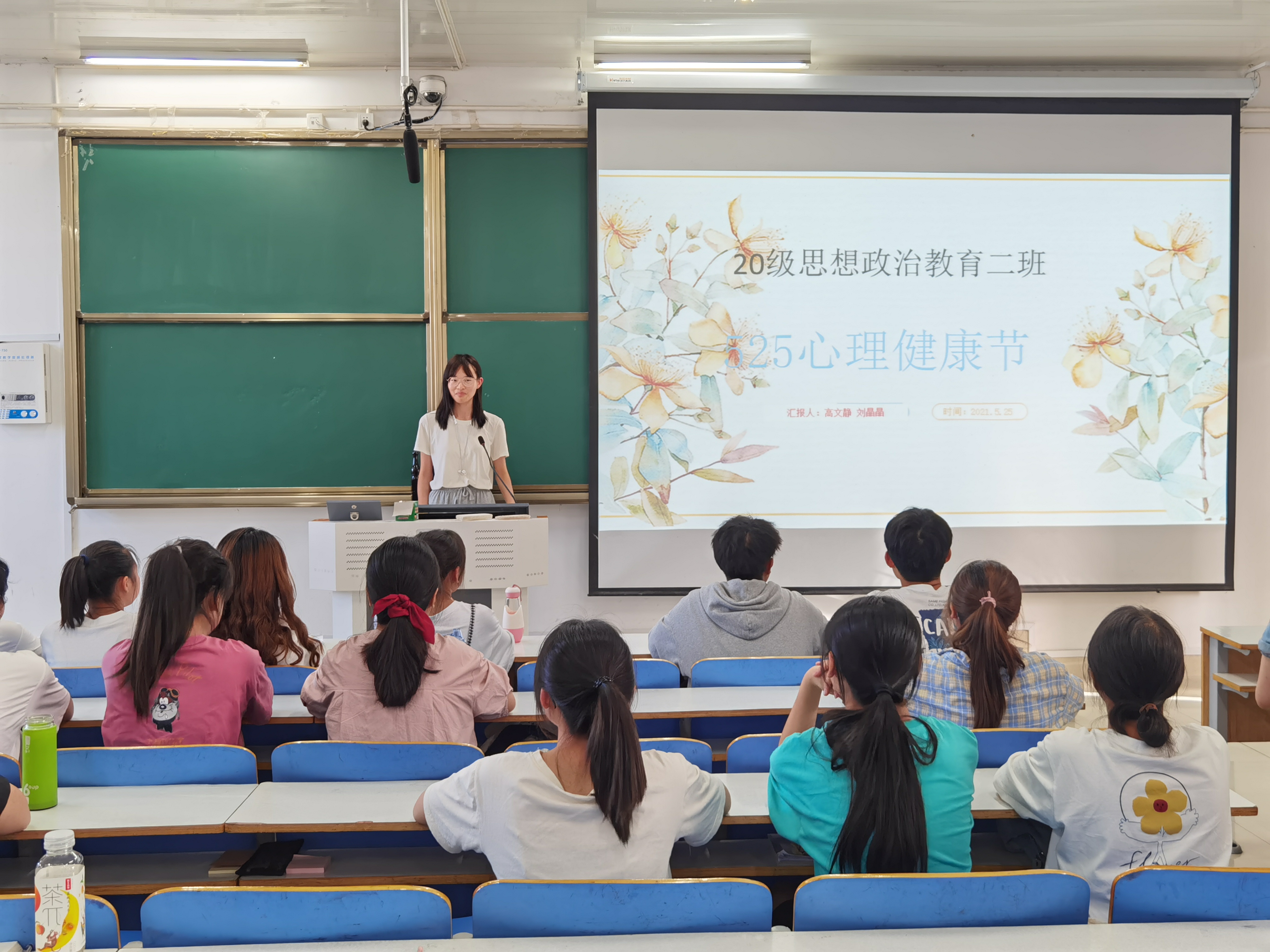 为大力营造“525,我爱我”节日氛围,进一步提高我班同学对自身心理健康的关注程度,5月25日下午,金年会jinnianhuicom2020级思想政治教育二班、定向二班“525心理健康节”主题班会在社科楼514教室顺利召开。二班、定向二班全体学生参与班会。班会由心理委员刘晶晶、高文静主持。