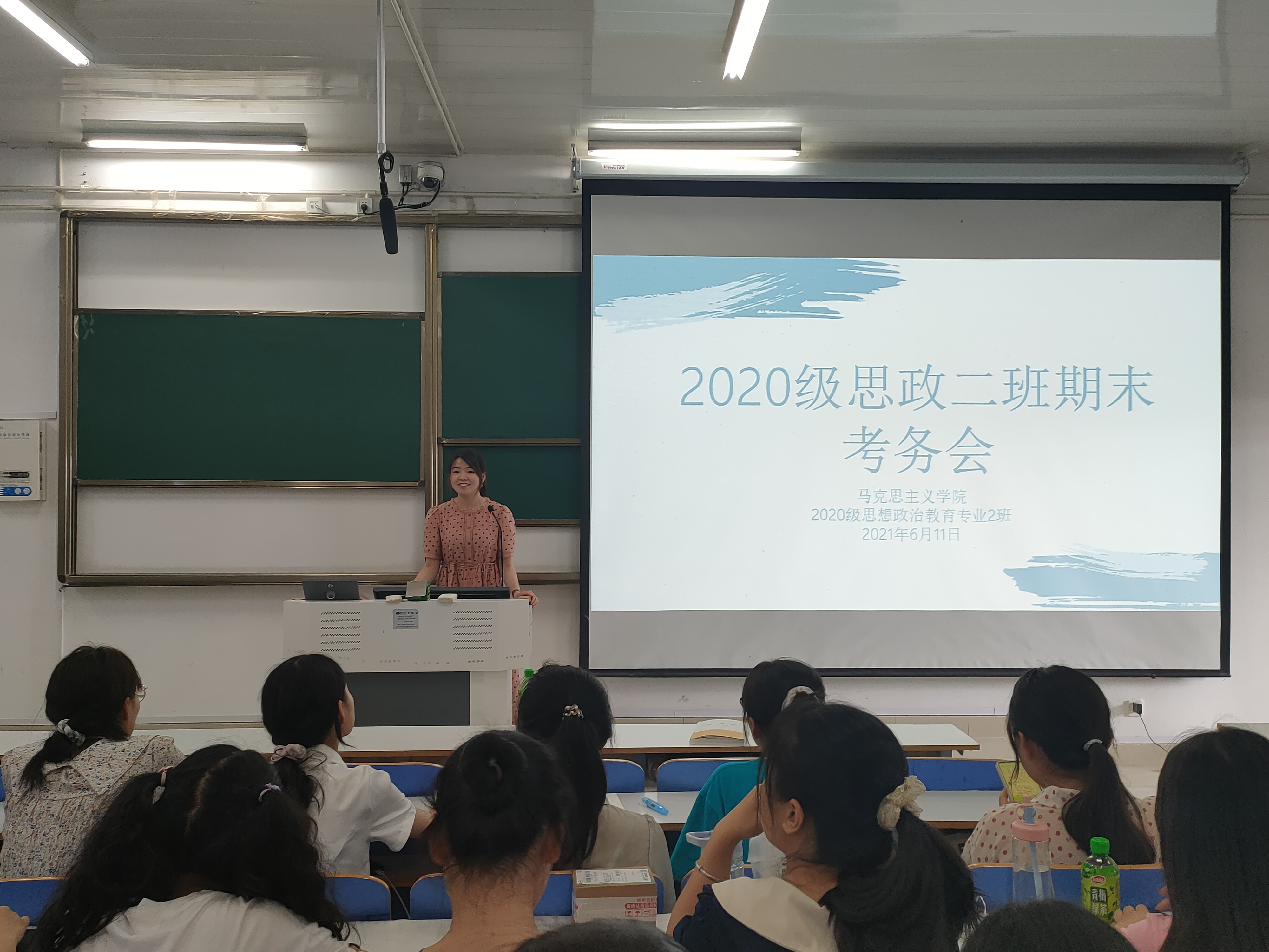 为严肃期末考试纪律,帮助我班同学制定科学合理的复习计划,6月11日下午,金年会jinnianhuicom2020级思想政治教育二班、定向二班期末考务会在社科楼514教室顺利召开。辅导员陶青青及二班、定向二班全体同学参与本次班会。会议由辅导员陶青青主持。