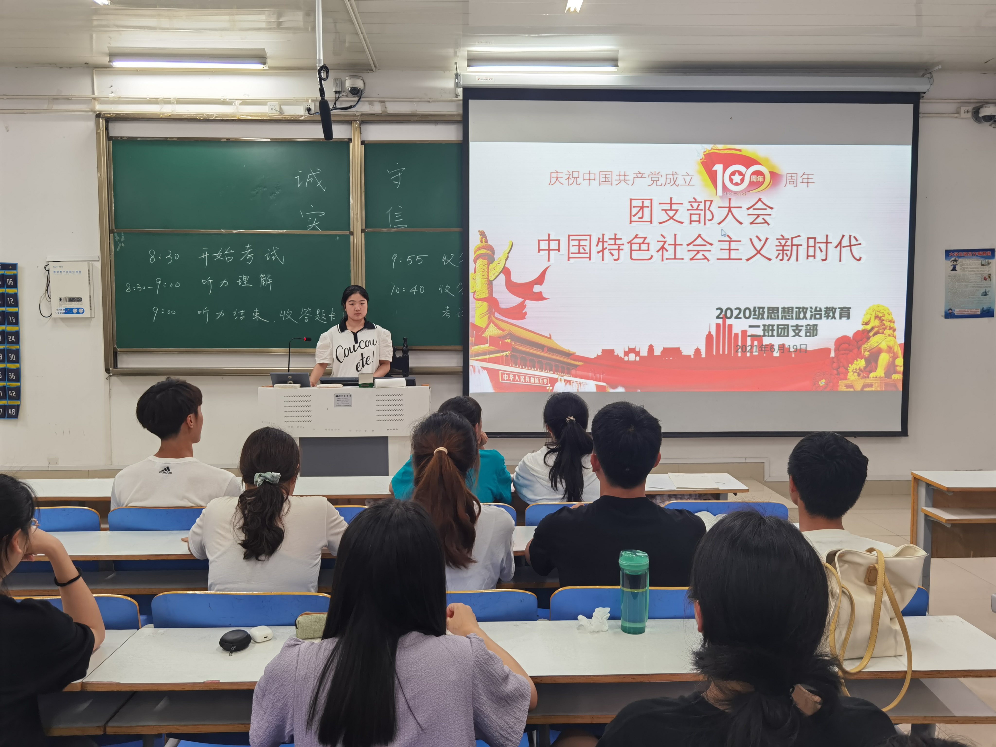 6月19日晚,金年会jinnianhuicom2020级思想政治教育二班、定向二班学习习近平新时代中国特色社会主义思想团支部大会在社科楼514教室顺利召开。二班、定向二班全体团员参与会议。大会由孙雪主持。