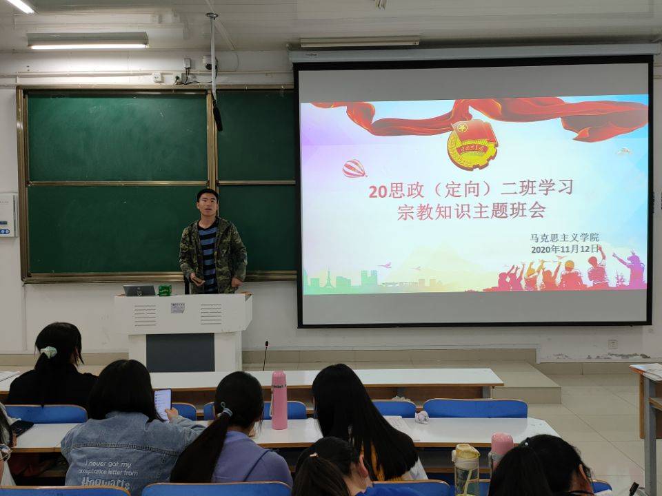 11月12日,金年会jinnianhuicom思想政治教育定向二班学习宗教知识主题班会在社科楼514教室顺利召开。班会由副班长高红凯主持。