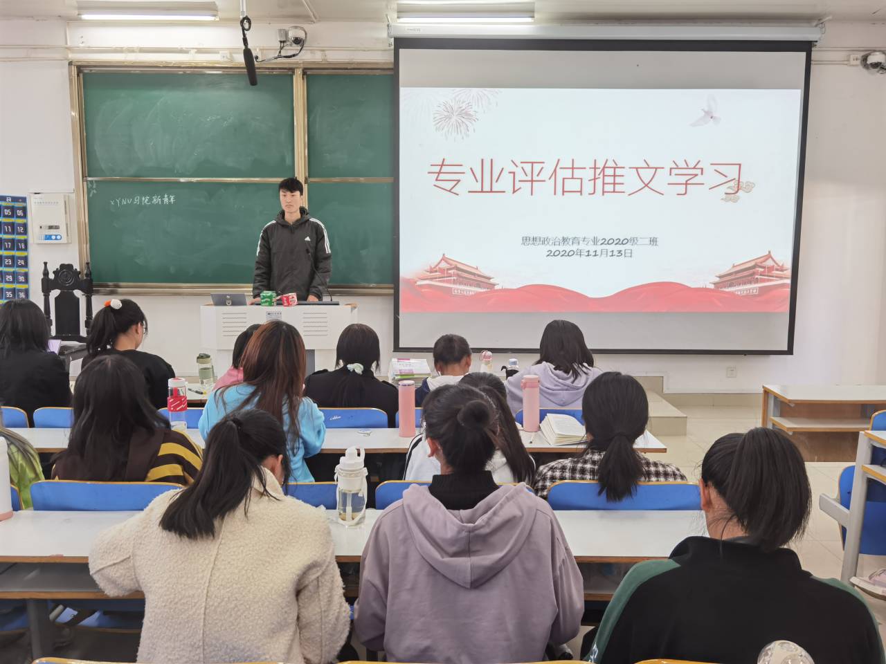 11月13日至16日,金年会jinnianhuicom2020级思想政治教育二班在社科楼514教室举办“专业评估推文学习”主题班会。2020级思想政治教育二班全体学生共同参与班会。班会由陈宇航主持。