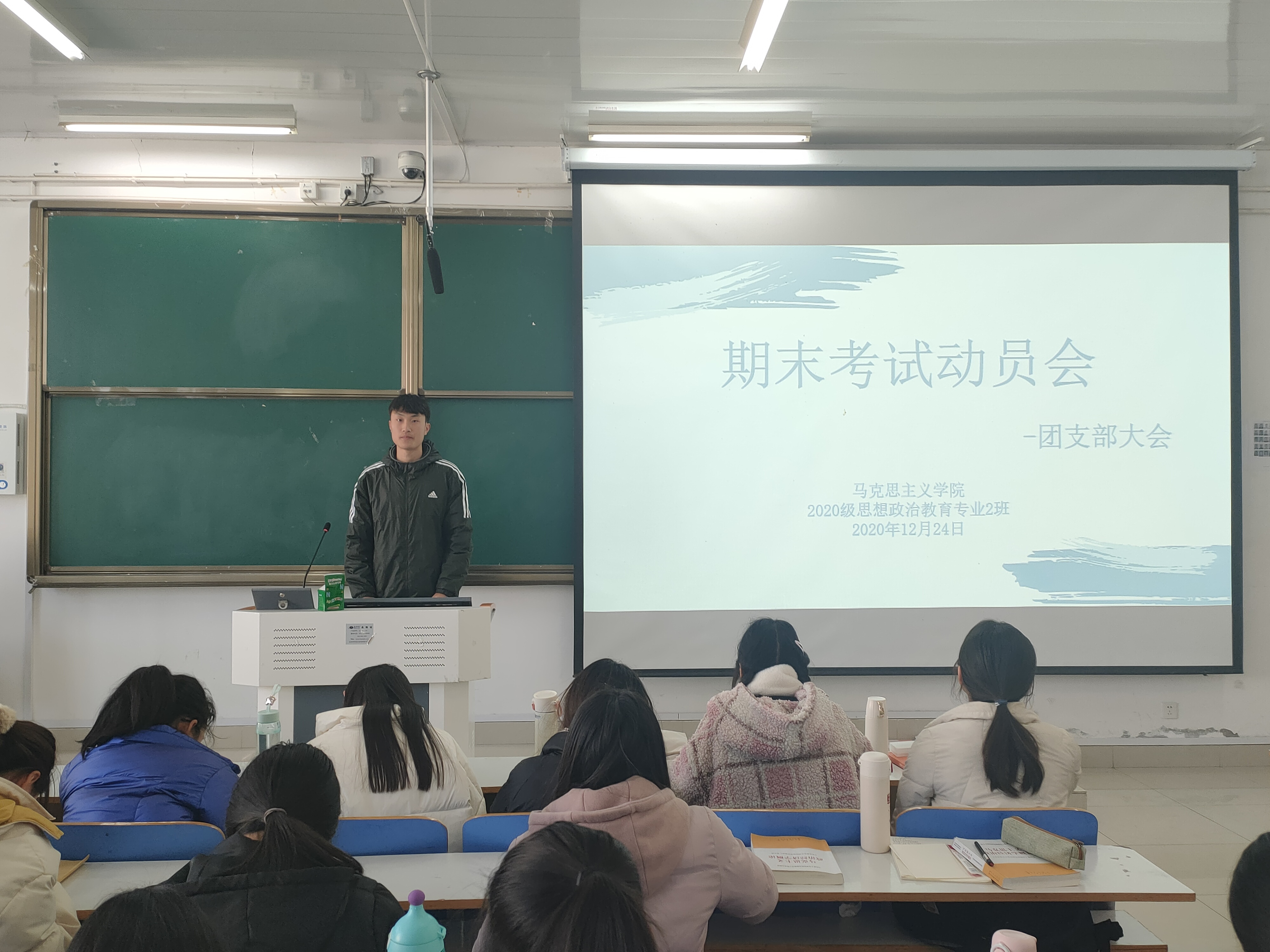12月24日上午,金年会jinnianhuicom2020级思想政治教育二班、(定向)二班在社科楼516教室顺利召开期末考试动员会。2020级思想政治教育二班、(定向)二班全体学生共同参与此次会议。会议由李晨曦、陈宇航主持。