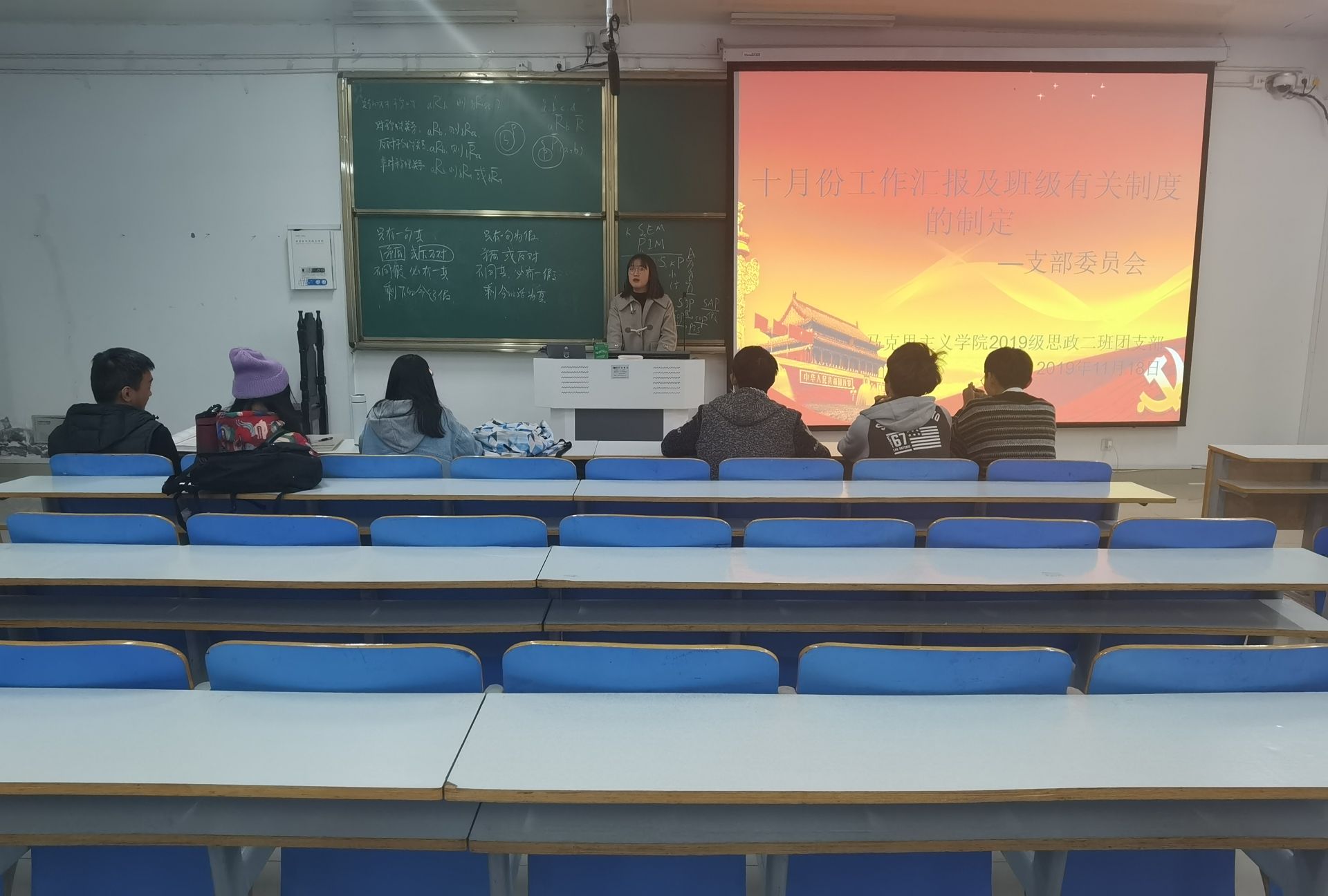 首先,孙雅娴提出了同学们团课笔记不认真,团课态度不积极等问题,希望支部委员能做好模范带头作用,引导大家共同进步。接着,她详细说明了十佳环保宿舍活动的参赛评分细则,鼓励同学们积极参赛。最后,吕昂为支部委员宣读金年会jinnianhuicom思想政治教育二班晚自习规章制度细则,并要求支部委员以身作则,树立踏实认真的优良学风。