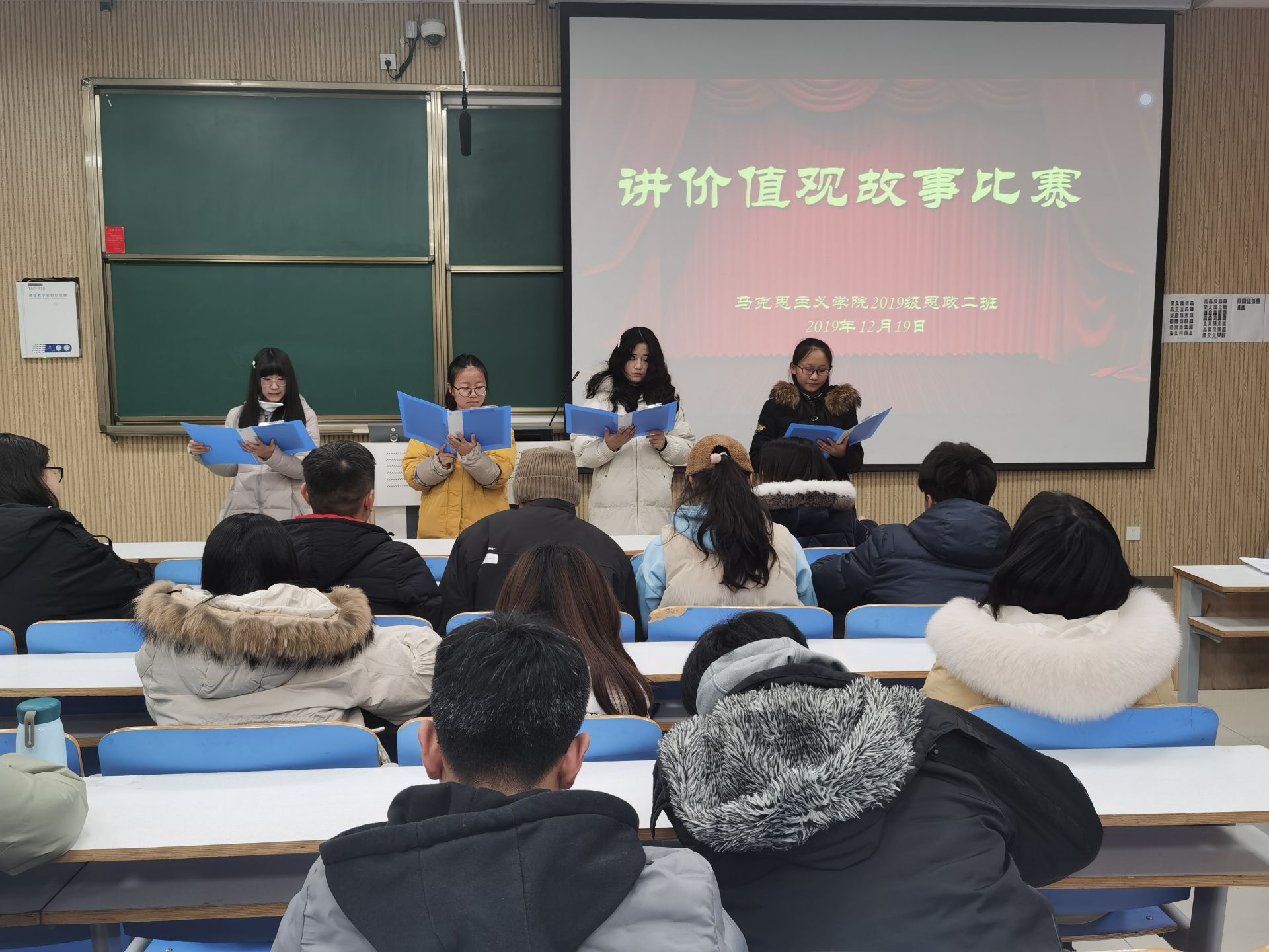 为深入贯彻学习社会主义核心价值观,金年会jinnianhuicom思想政治教育二班于12月19日在社科楼515教室举办“讲价值观故事,实现青春梦想”主题教育活动。团委老师陶青青及思想政治教育二班全体学生共同参会,本次活动由团支书孙雅娴主持。