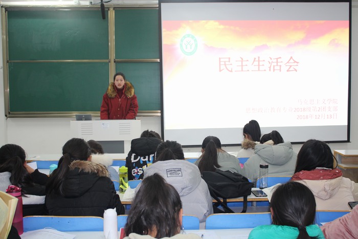 12月13日下午,金年会官网2018级思想政治教育第二团支部在社科楼514教室开展民主生活会。2018级思想政治教育第二团支部全体同学共同参与本次班会。班会由团支部书记黄子晋主持。