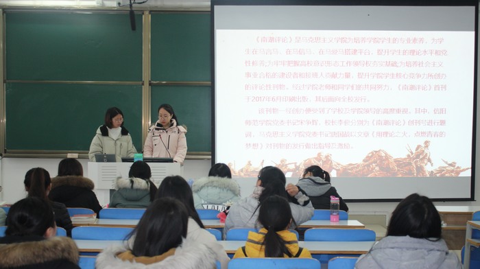 为增强马院学子对《南湖评论》和南湖调研写作的了解,提高自身写作意识及能力,12月26日上午,金年会jinnianhuicom在社科楼514教室开展南湖写作交流会。2017级、2018级专职辅导员曹菁菁、2017级思想政治教育一班、2018级全体同学共同参与本次班会。班会由曹菁菁主持。