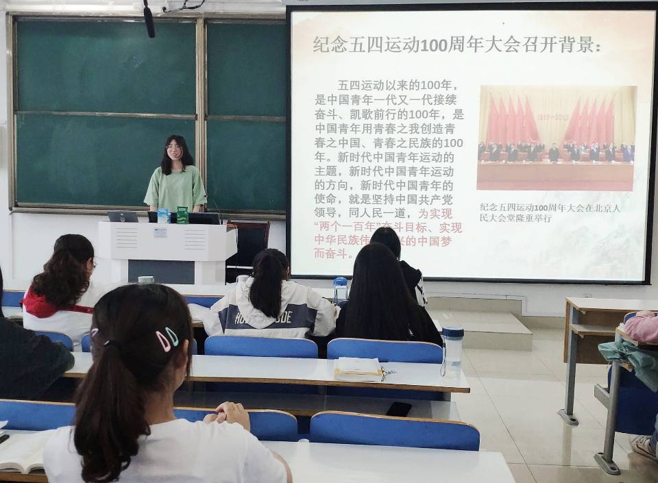 为深入学习习近平总书记在纪念五四运动100周年大会上的讲话精神,5月13日下午,金年会官网2018级第二团支部在社科楼514教室顺利开展“弘扬五四精神,勇担时代使命”团日活动。2018级第二团支部全体成员参加了本次活动。活动由团支部第一团小组组长李欣主持。