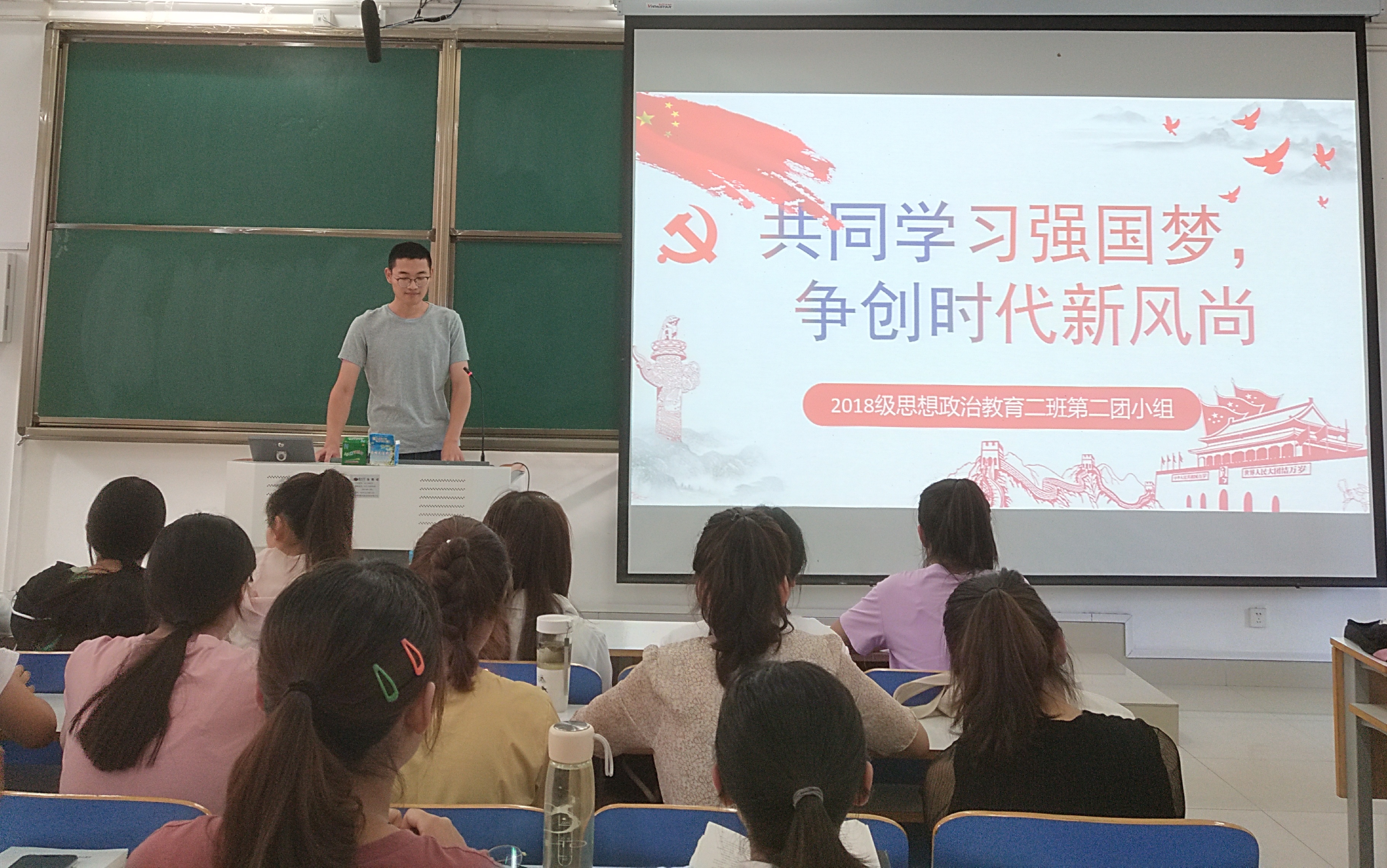 5月23日上午,金年会官网2018级第二团支部在社科楼514教室开展了“共同学习强国梦,争创时代新风尚”主题团课。2018级第二团支部所有成员参加了本次团课。团课由团支部副书记杨康主持。