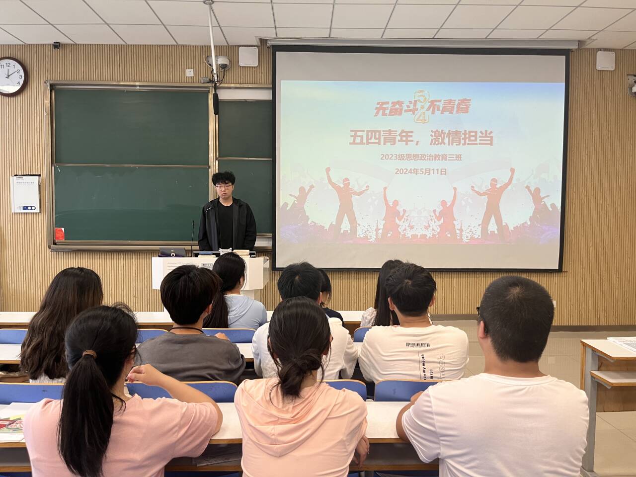 为传承和弘扬担当精神,5月11日上午,金年会jinnianhuicom2023级思想政治教育三班在社科楼515召开“五四青年,激情担当”主题团课。金年会官网2023级思想政治教育三班全体同学共同参与本次团课,团课由团支书郝瀚主持。