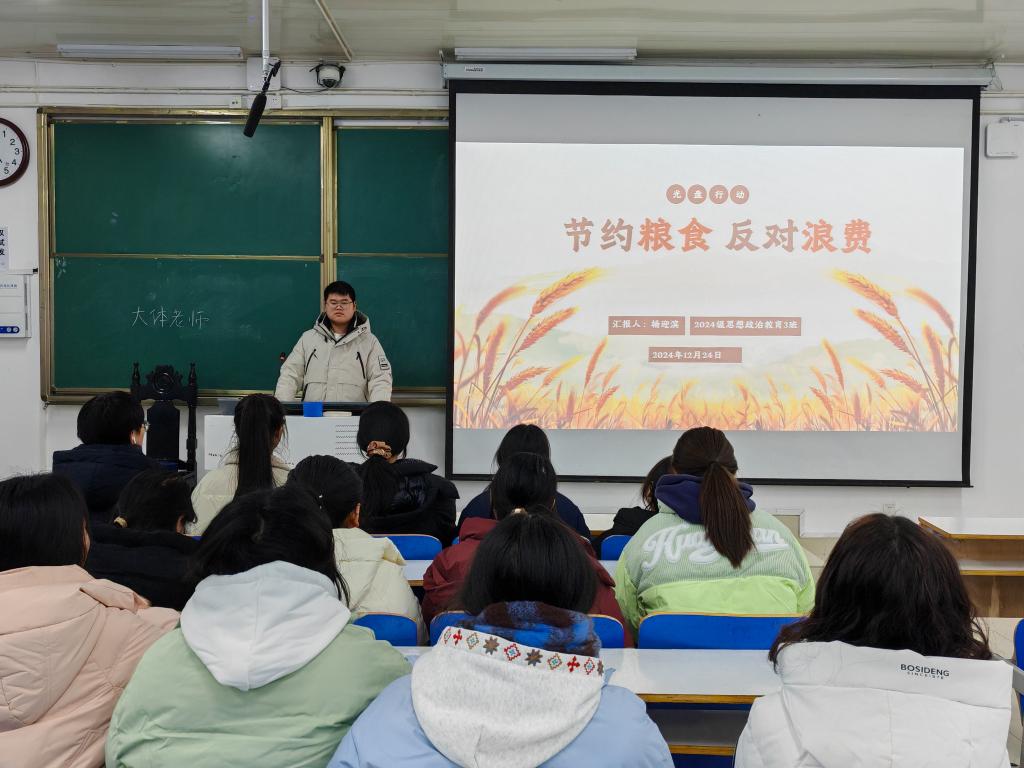 为引导学生们树立珍惜粮食的意识,养成勤俭节约的好习惯,金年会jinnianhuicom2024级思想政治教育三班于12月24日在社科楼514教室成功召开了一场以“节约粮食,反对浪费”为主题的班会活动。