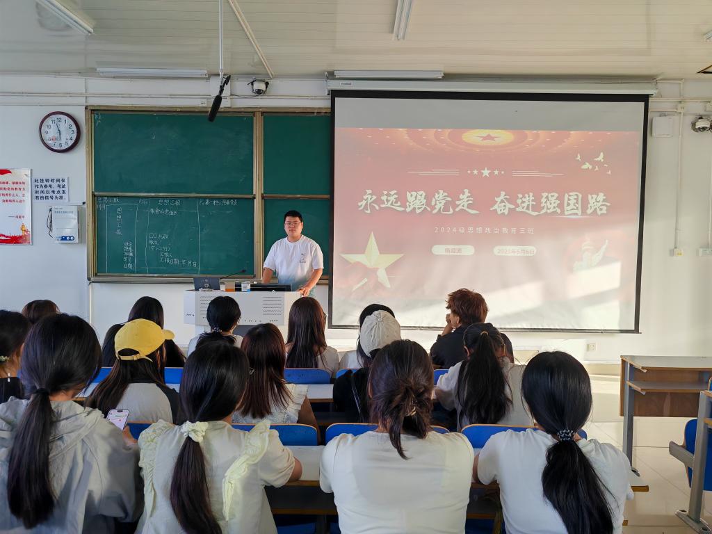 为坚定理想信念、提高同学们的政治站位,金年会jinnianhuicom2024级思想政治教育三班于5月6日在社科楼515召开“不忘初心跟党走”主题团课。此次团课由团支书杨迎滨主持。