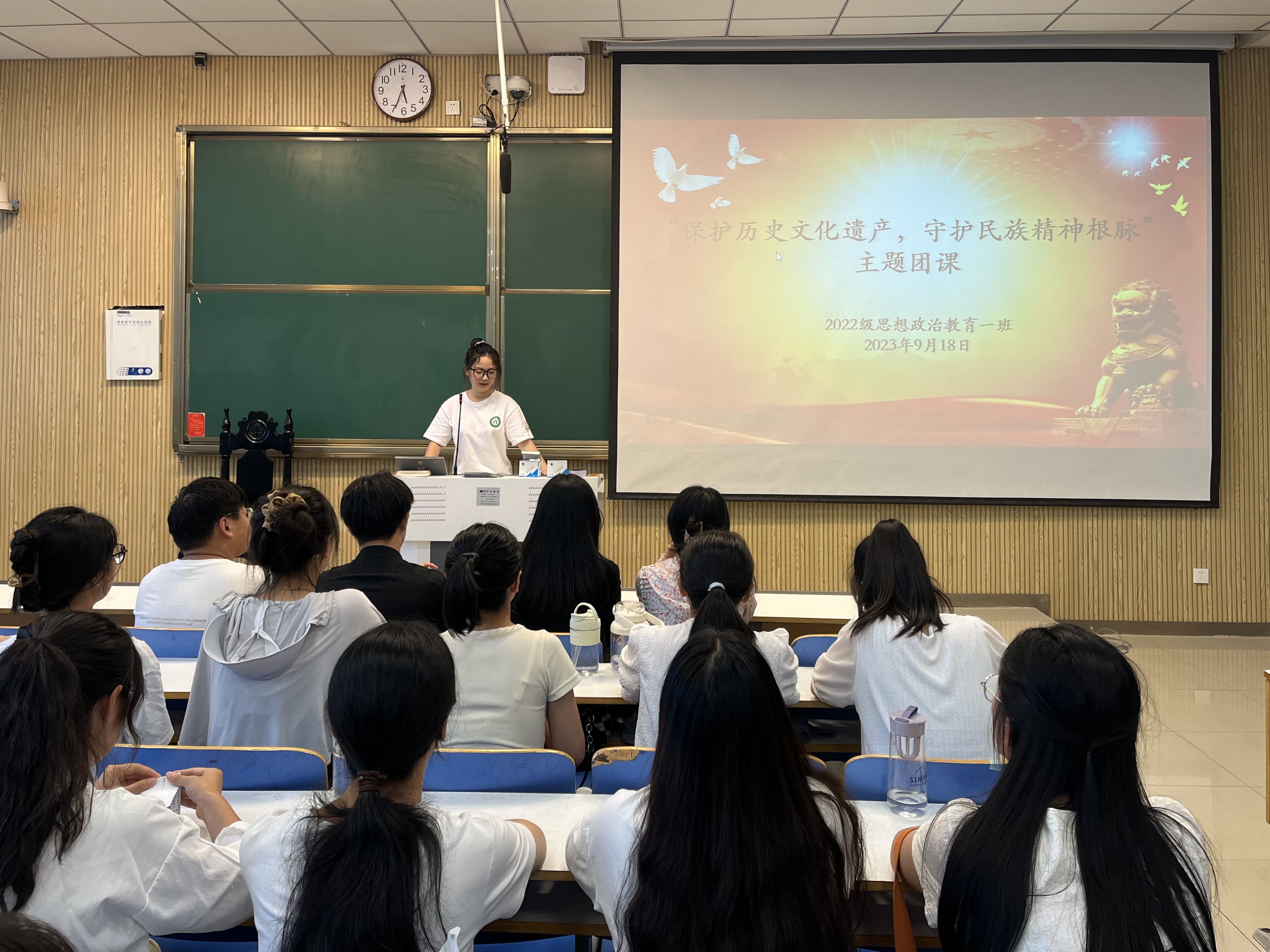 9月18日下午,金年会jinnianhuicom2022级思想政治教育一班在社科楼514教室召开“保护历史文化遗产,守护民族精神根脉”主题团课。金年会官网2022级思想政治教育一班全体同学共同参与本次团课,团课由团支书李佳茹主持。
