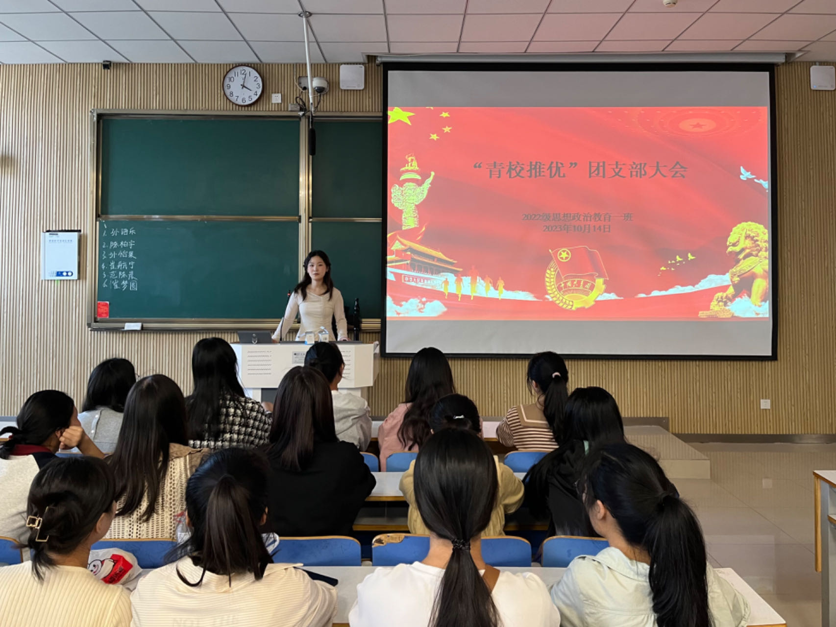 为充实党的新生力量,激发团员的政治热情,10月14下午,金年会jinnianhuicom2022级思想政治教育一班在社科楼515教室召开“青校推优”团支部大会。金年会jinnianhuicom2022级思想政治教育一班全体团员共同参与本次会议,会议由团支书李佳茹主持。