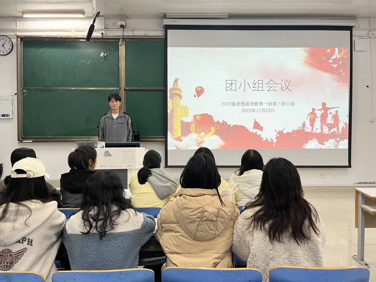 11月23日下午,金年会jinnianhuicom2022级思想政治教育一班在社科楼514教室召开“发扬奋斗精神,展现青春担当”团小组会议,金年会官网2022级思想政治教育一班第三团小组成员共同参与本次会议,会议由第三团小组组长闻炎仲主持。