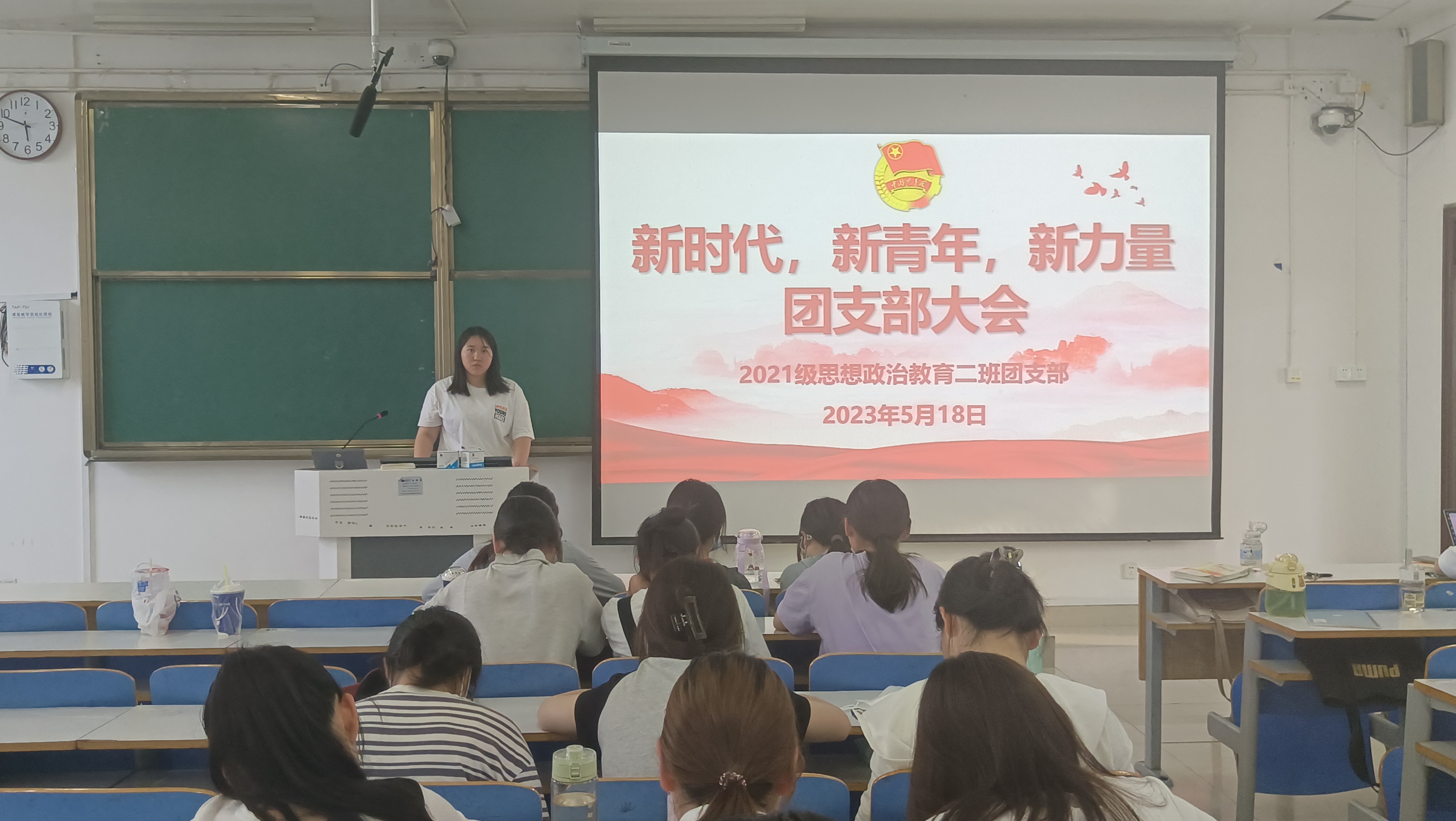 5月18日下午,金年会jinnianhuicom2021级思想政治教育二班在社科楼514教室召开“新时代,新青年,新力量”团支部大会。2021级思想政治教育二班全体团员参加此次团支部大会。会议由团支书王婧欣主持。