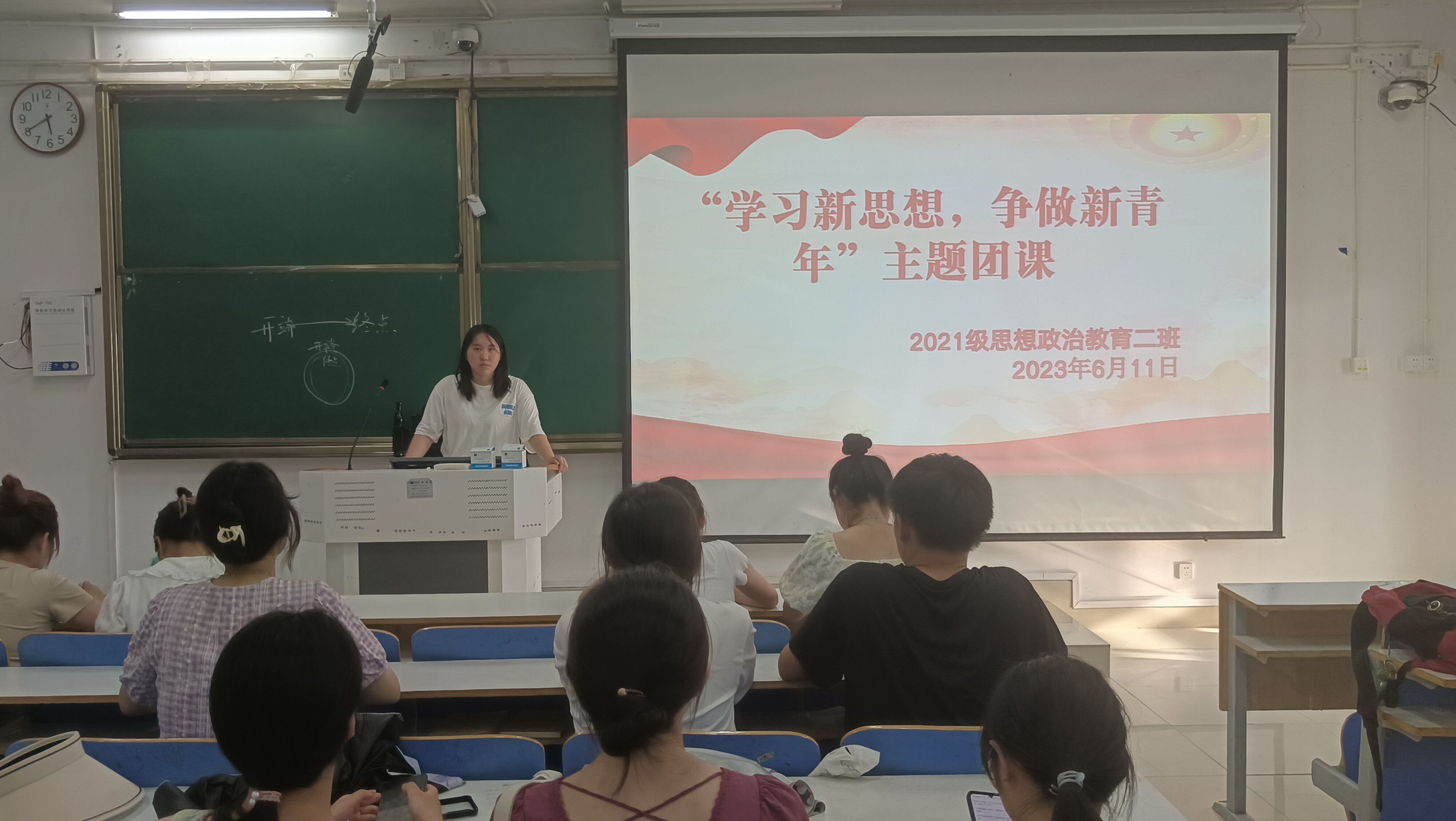 6月11日上午,金年会jinnianhuicom2021级思想政治教育二班在社科楼514教室召开“学习新思想,争做新青年”主题团课。2021级思想政治教育二班全体团员参加此次团课。团课由团支书王婧欣主持。