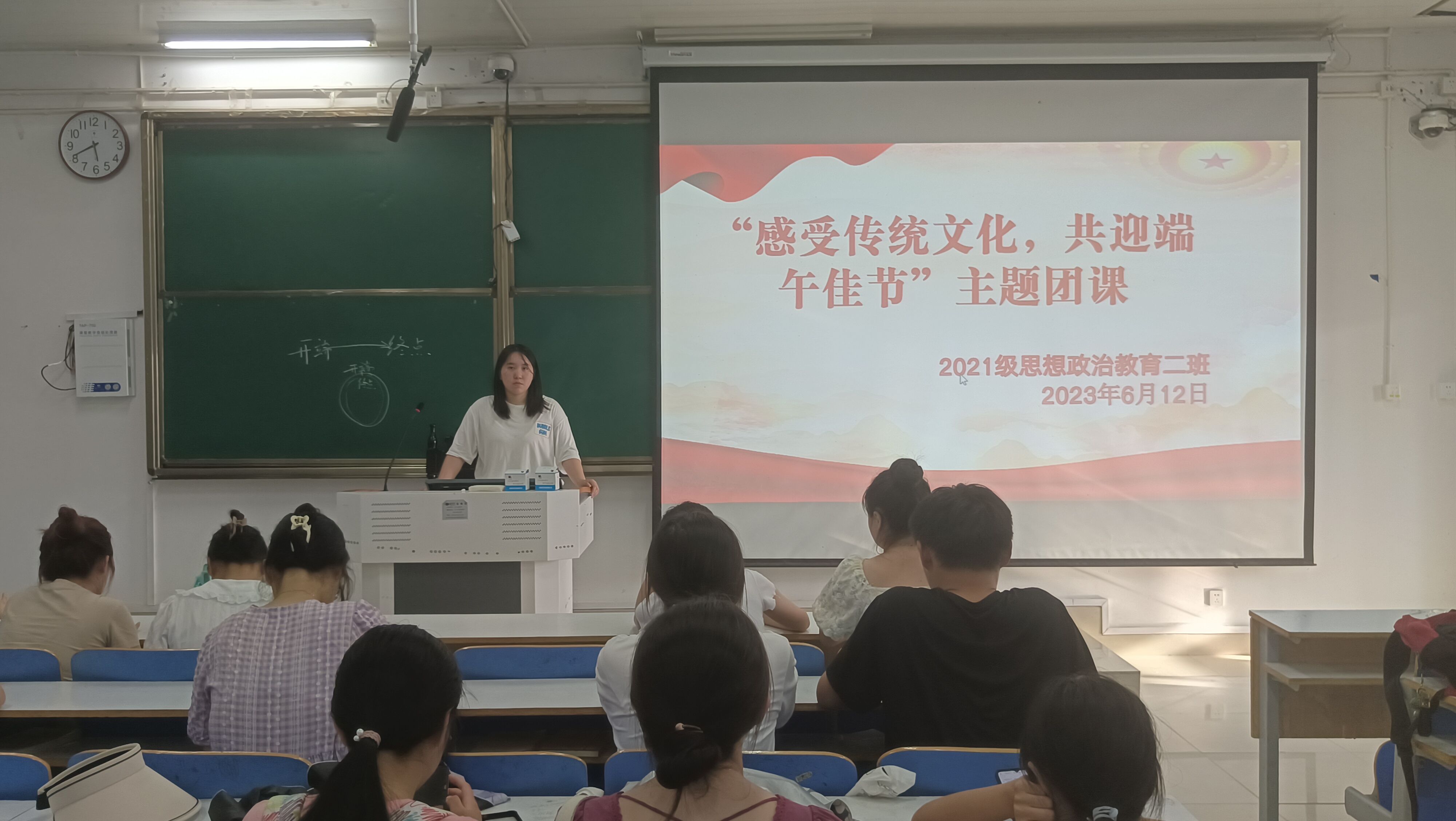 6月12日上午,金年会jinnianhuicom2021级思想政治教育二班在社科楼514教室召开“感受传统文化,共迎端午佳节”主题团课。2021级思想政治教育二班全体团员参加此次团课。团课由团支书王婧欣主持。
