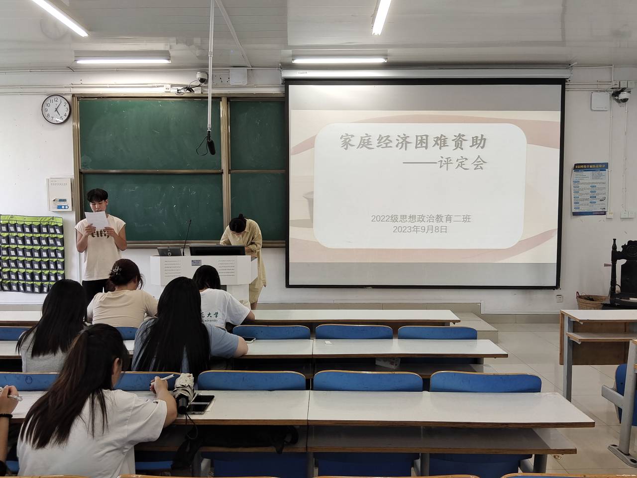9月8日下午,金年会jinnianhuicom2022级思想政治教育二班在社科楼514教室召开“家庭经济困难资助评定会”。金年会官网2022级思想政治教育二班杨春艳老师和全体同学参与本次评议会。副班长柴智森主持本次会议。