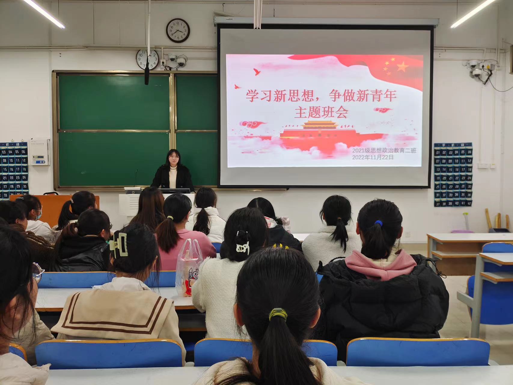 11月22日下午,金年会jinnianhuicom2021级思想政治教育二班在社科楼514教室召开“学习新思想,争做新青年”主题班会。2021级思想政治教育二班全体成员共同参加此次班会。班会由团支书王婧欣主持。