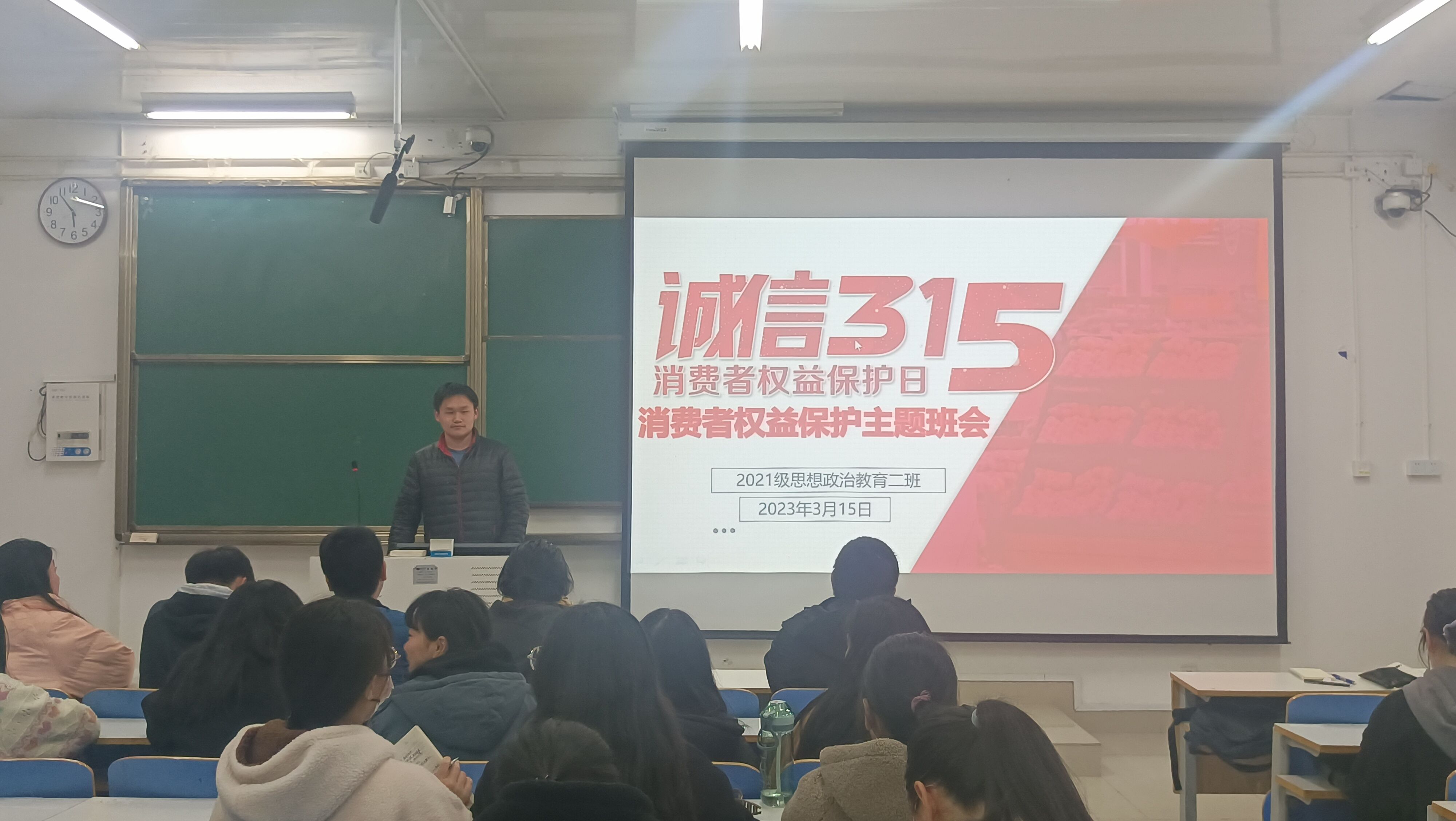 3月15日下午,金年会jinnianhuicom2021级思想政治教育二班在社科楼514教室召开消费者权益保护主题班会。2021级思想政治教育二班全体同学参加此次主题班会。班会由副班长任振豪主持。