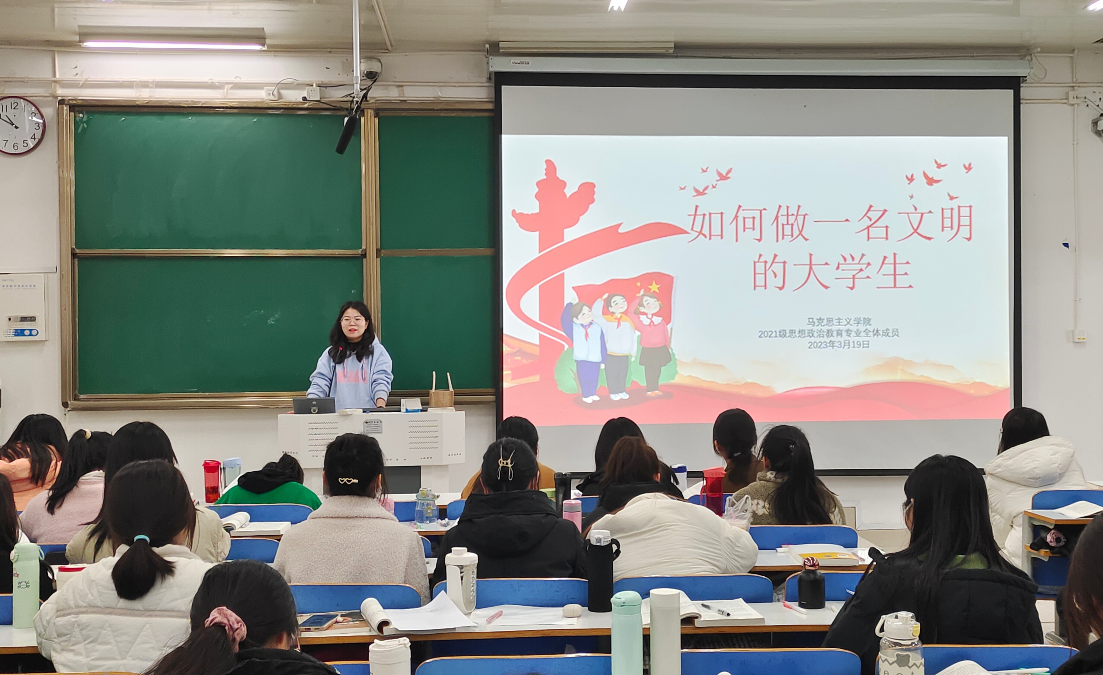 3月19日下午,金年会jinnianhuicom2021级思想政治教育一班、二班召开“如何做一名文明大学生”主题班会。辅导员高小佳及2021级思想政治教育一班、二班共同参加本次班会。班会由辅导员高小佳主持。