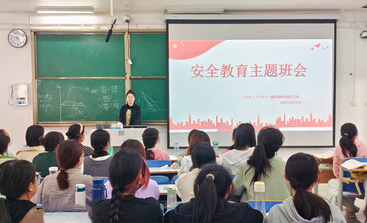 为进一步维护校园安全,增强学生安全意识,4月12日上午,金年会jinnianhuicom2021级思想政治教育一班、二班在社科楼515教室召开安全教育主题班会。辅导员高小佳以及2021级思想政治教育全体成员共同参加,班会由辅导员高小佳主持。