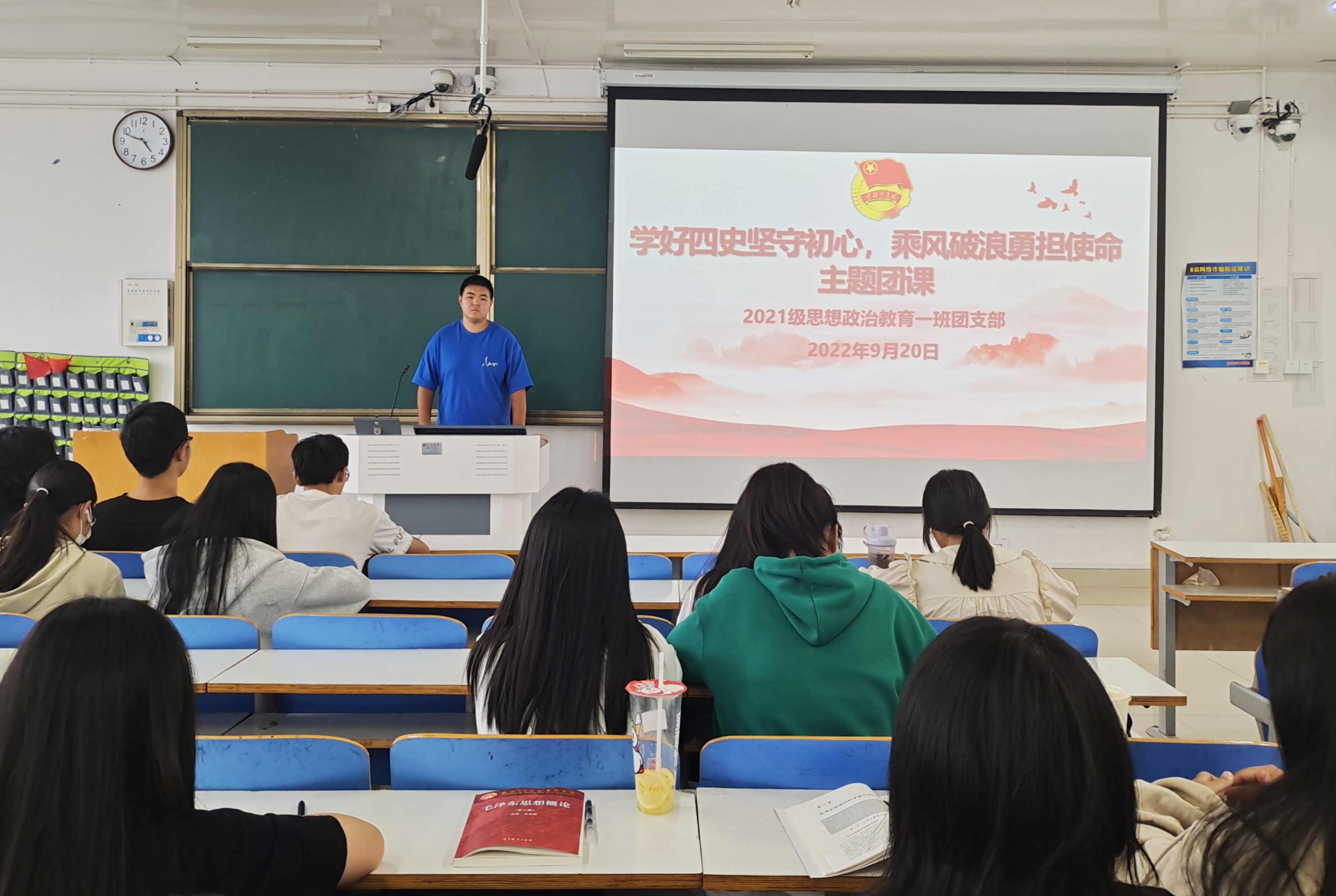 9月20日下午,金年会jinnianhuicom2021级思想政治教育一班在社科楼514教室召开“学好四史坚守初心,乘风破浪勇担使命”主题团课。2021级思想政治教育一班全体团员共同参加了本次团课,团课由团支书戴翰林主持。