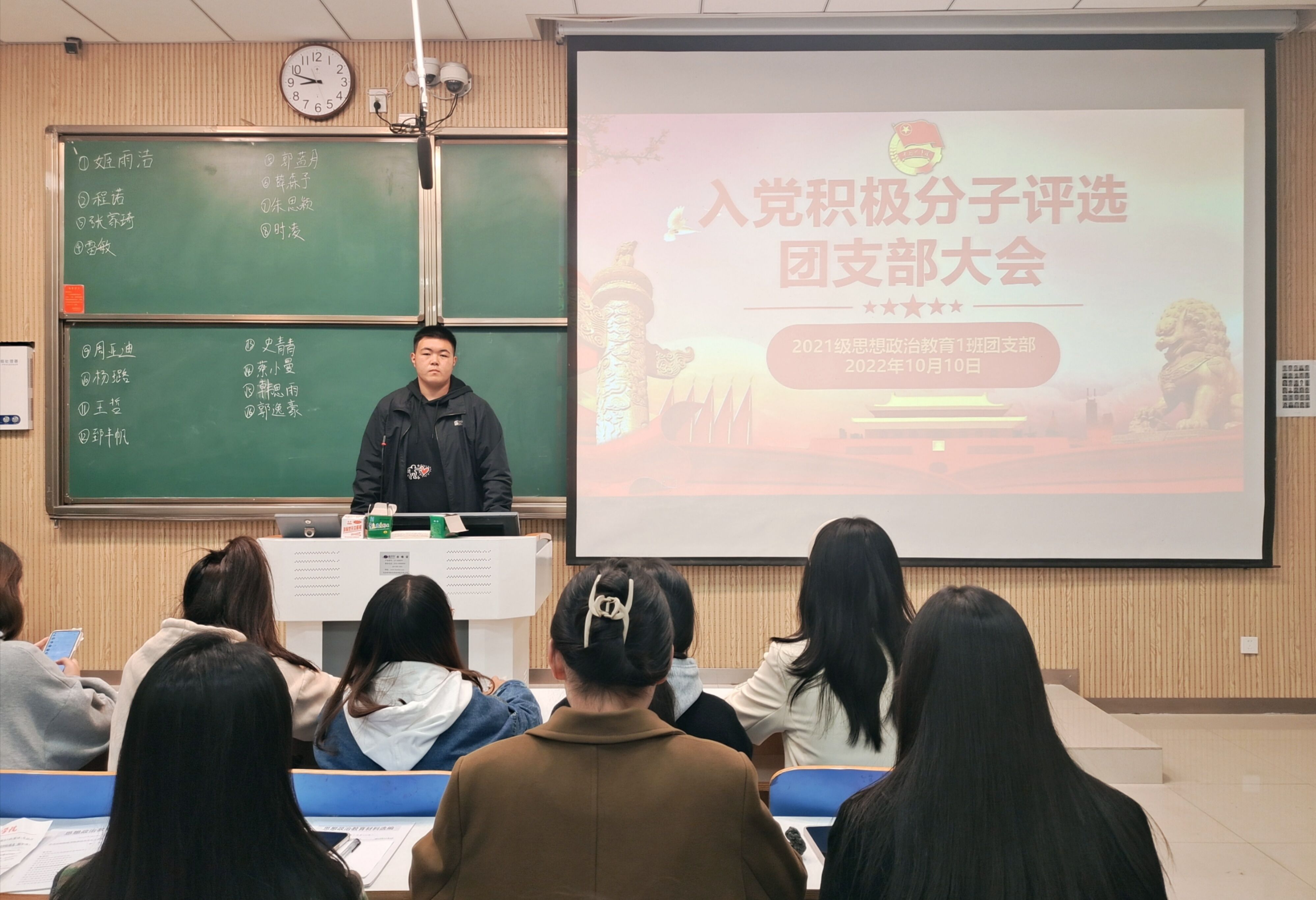 10月10日下午,金年会jinnianhuicom2021级思想政治教育一班在社科楼515教室召开入党积极分子评选团支部大会。2021级思想政治教育一班全体团员共同参加了本次会议。会议由团支书戴翰林主持。