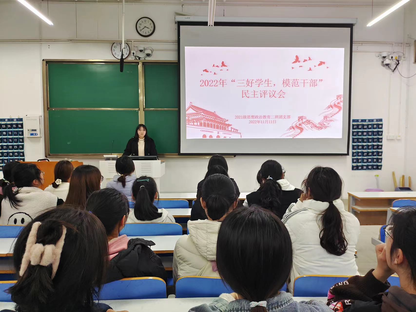 11月11日下午,金年会jinnianhuicom2021级思想政治教育二班在社科楼514教室召开2022年“三好学生,模范干部”民主评议会。2021级思想政治教育二班全体成员共同参加此次民主评议会。评议会由团支书王婧欣主持。