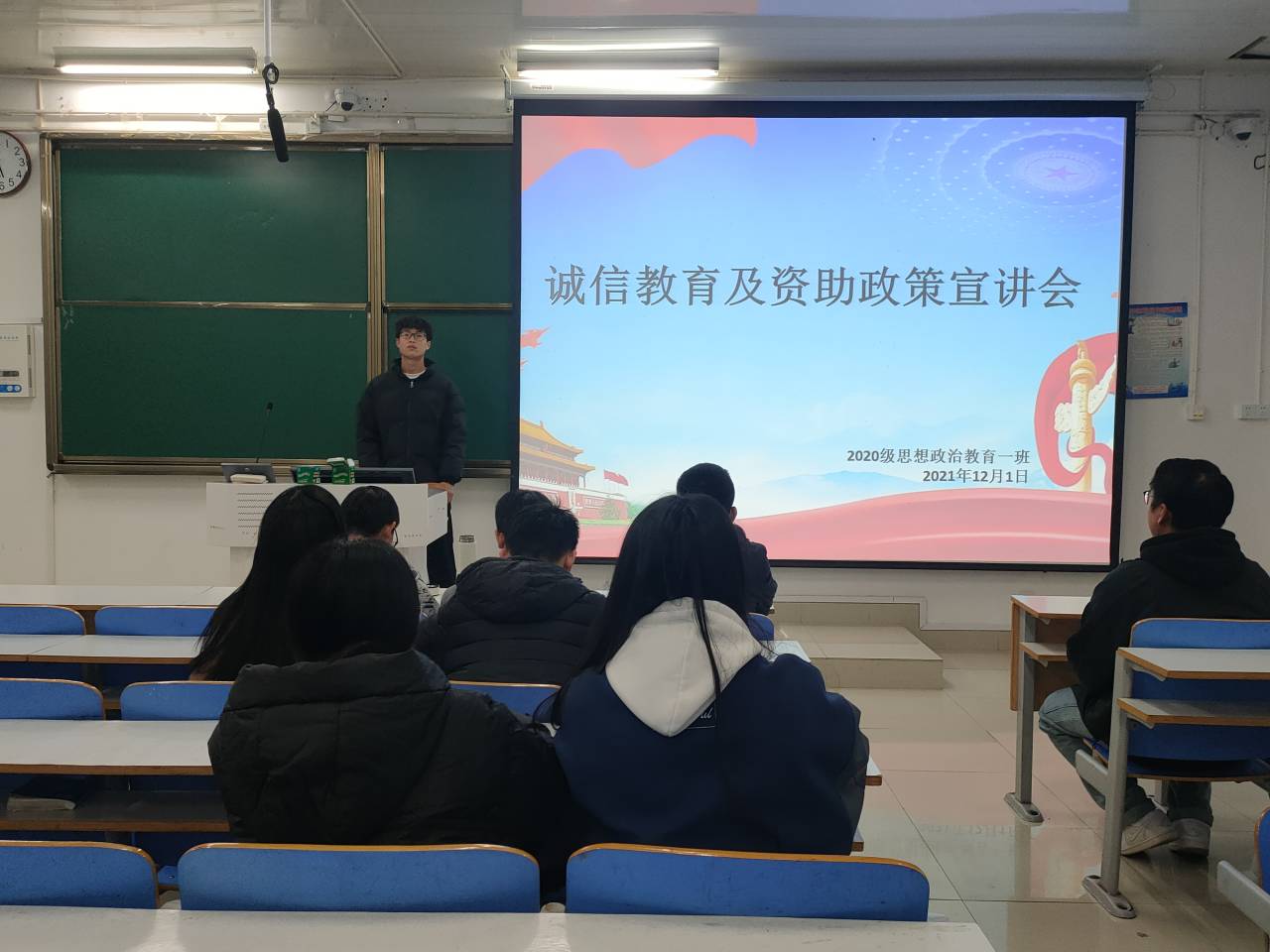 12月1日,金年会jinnianhuicom2020级思想政治教育一班在社科楼514教室顺利召开“诚信教育及资助政策”宣讲会。2020级思想政治教育一班全体同学参加本次会议,宣讲会由副班长白帅豪主持。