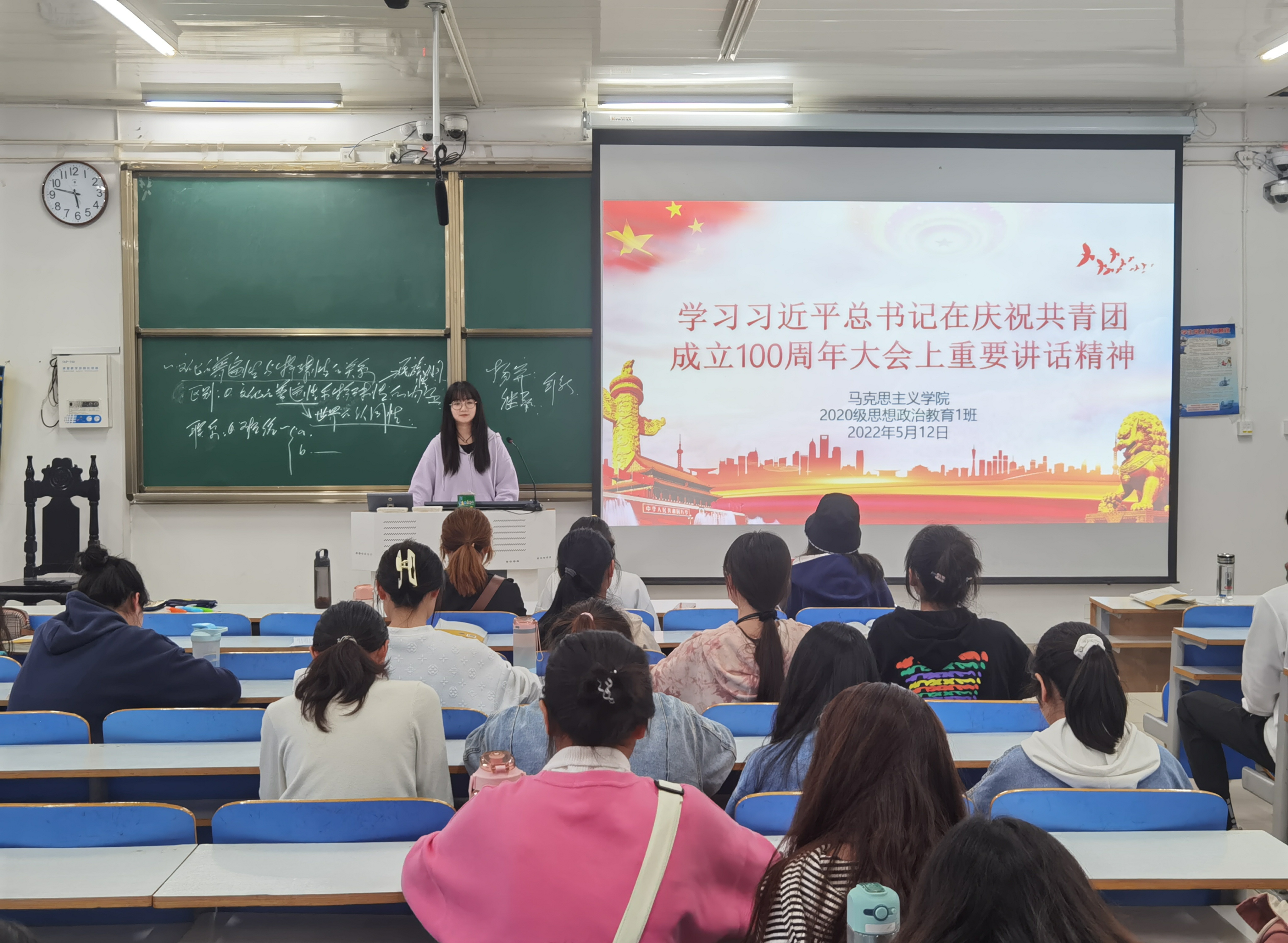 5月12日下午,金年会jinnianhuicom2020级思想政治教育一班在社科楼514教室组织学习“习近平总书记在庆祝共青团成立100周年大会上重要讲话”精神,会议由团支书卢茜雨主持。