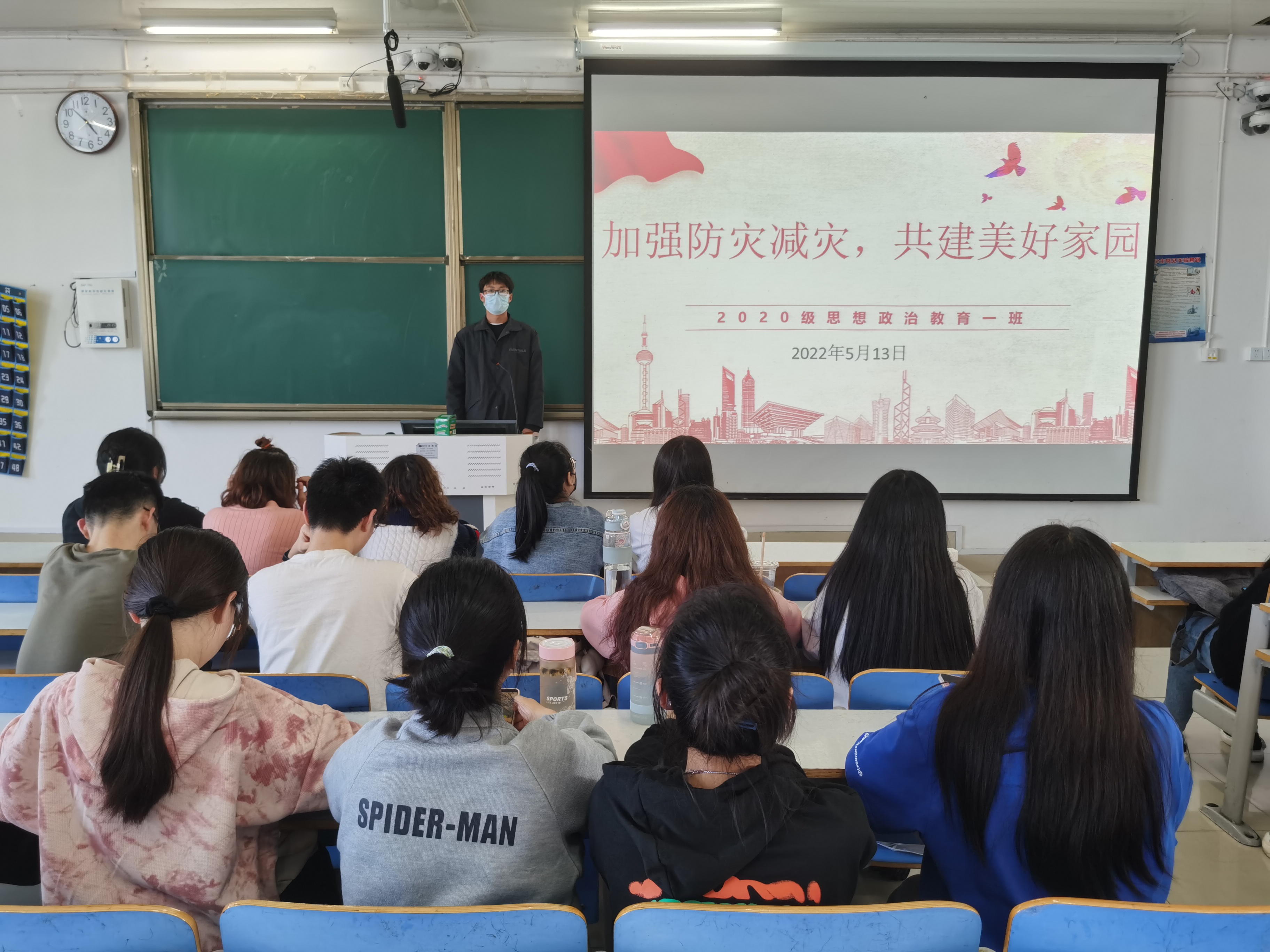 5月13日上午,金年会jinnianhuicom2020级思想政治教育一班在社科楼514召开了“加强防灾减灾,共建美好家园”的主题班会。2020级思想政治教育一班全体同学共同参加本次班会,班会由副班长白帅豪主持。