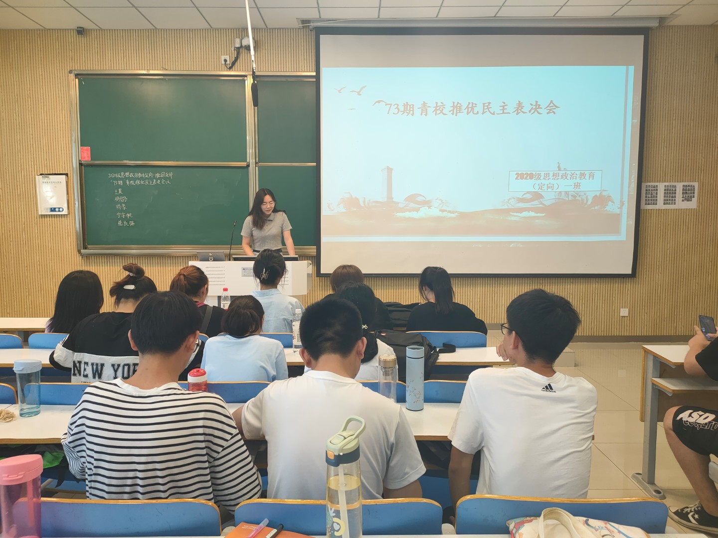 10月4日上午,金年会jinnianhuicom2020级思想政治教育(定向)一班在社科楼515教室顺利举办团支部“73期”青校推优民主表决会议。金年会jinnianhuicom思想政治教育(定向)一班全体学生参加了此次会议。