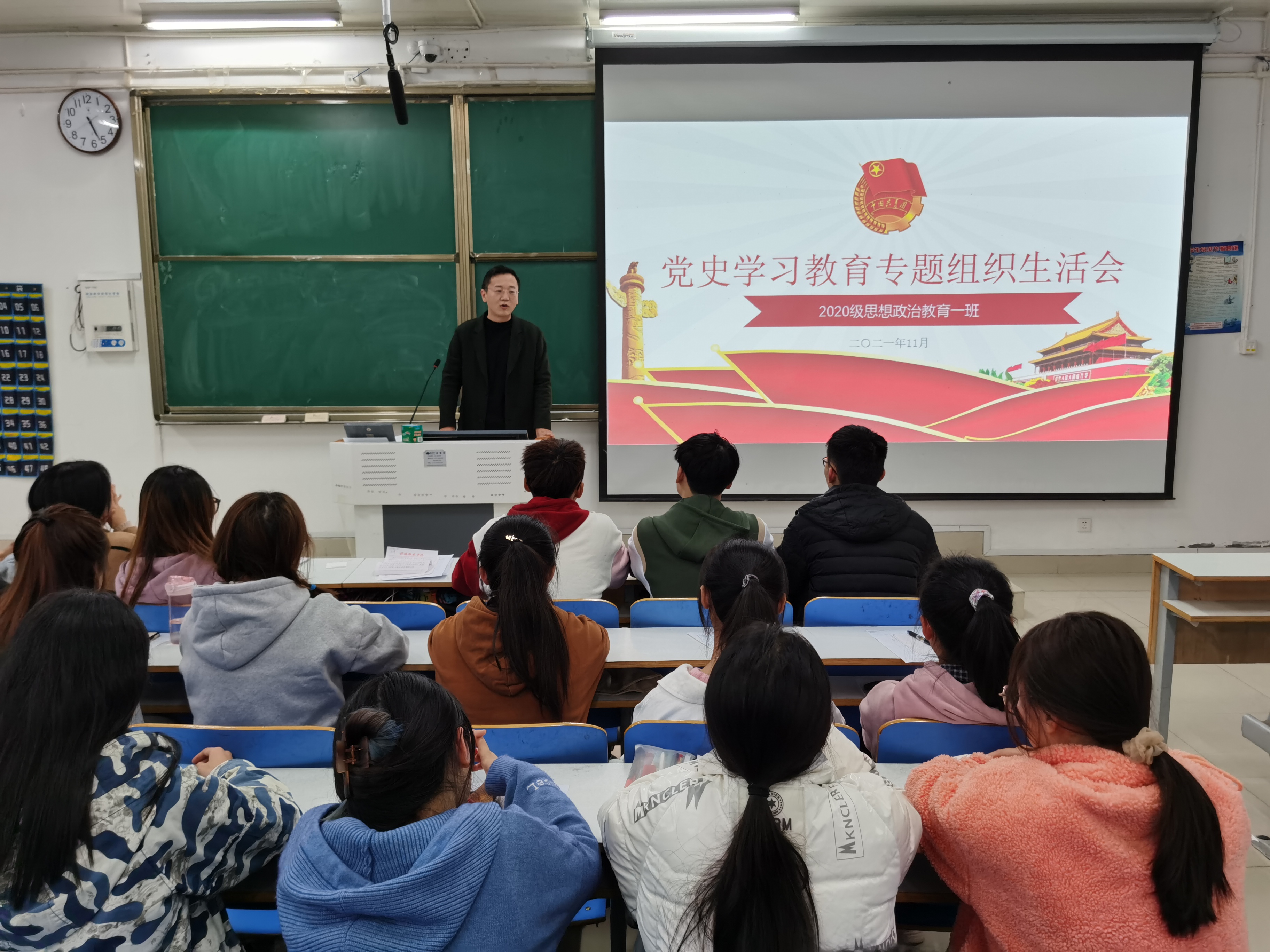 11月14日下午,金年会jinnianhuicom2020级思想政治教育一班在社科楼514教室召开党史学习教育专题组织生活会。辅导员曹栋及2020级思想政治教育一班全体团员参加了本次会议,会议由团支书卢茜雨主持。