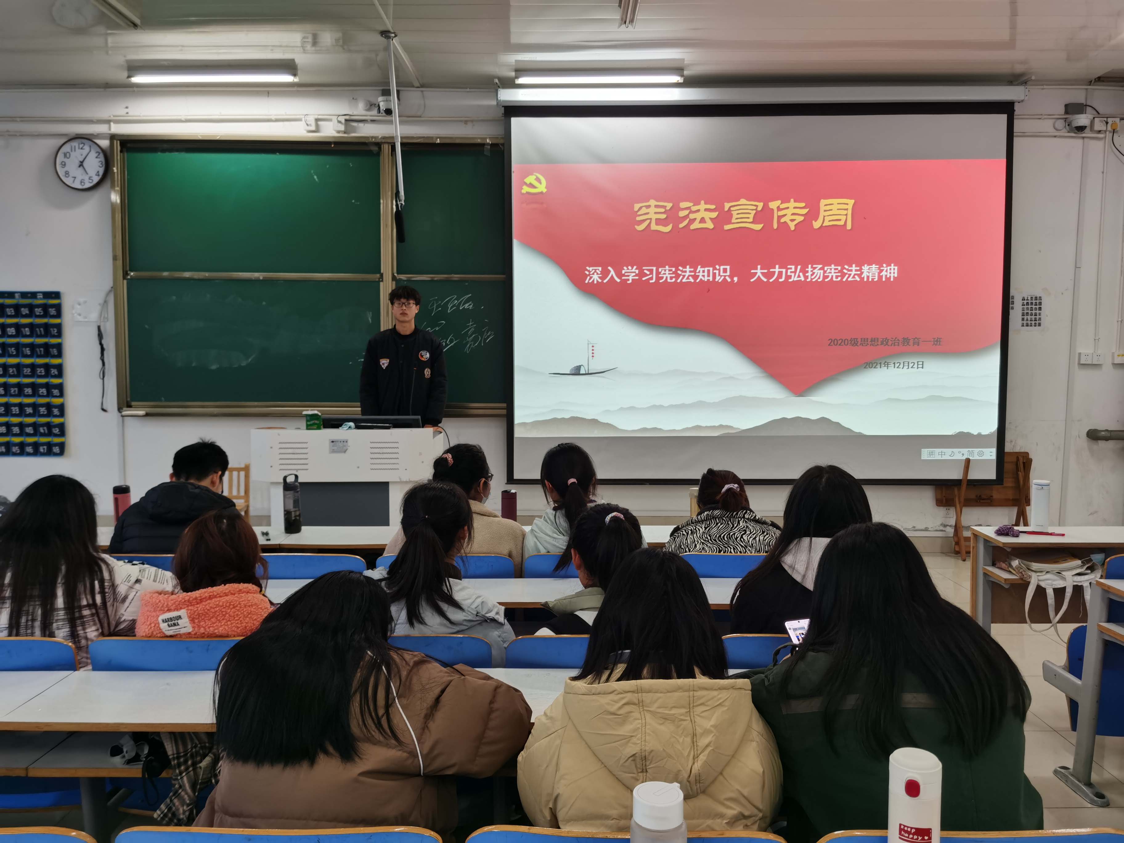为增强同学们的法治观念,培养法治思维,12月2日下午,金年会jinnianhuicom2020级思想政治教育一班在社科楼516教室召开“深入学习宪法知识,大力弘扬宪法精神”主题班会。