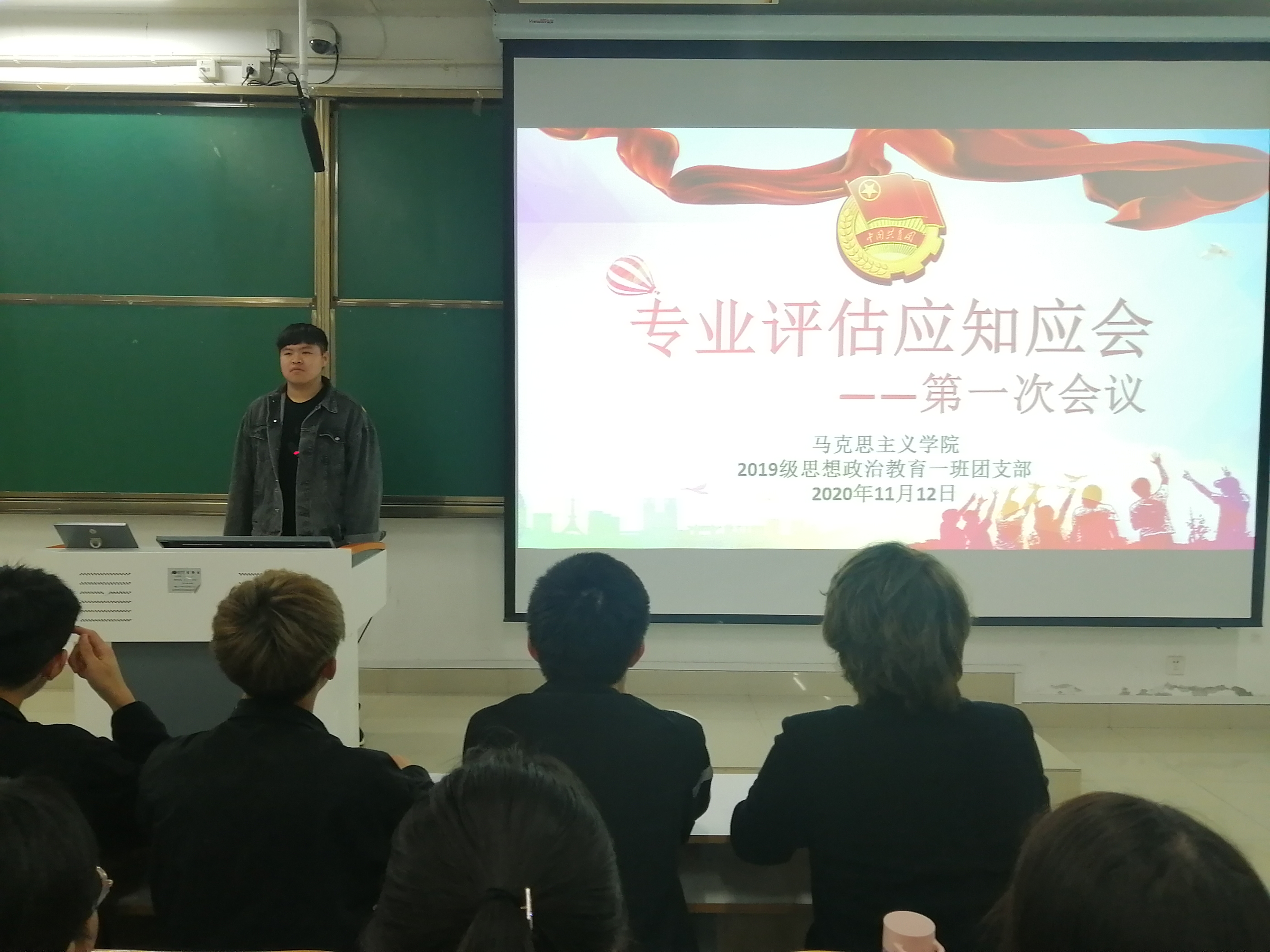 11月12日上午,金年会jinnianhuicom2019级思想政治教育一班在社科楼516教室召开“专业评估应知应会”。金年会jinnianhuicom2019级思想政治一班全体成员参加本次会议,会议由团支书贾子漪主持。