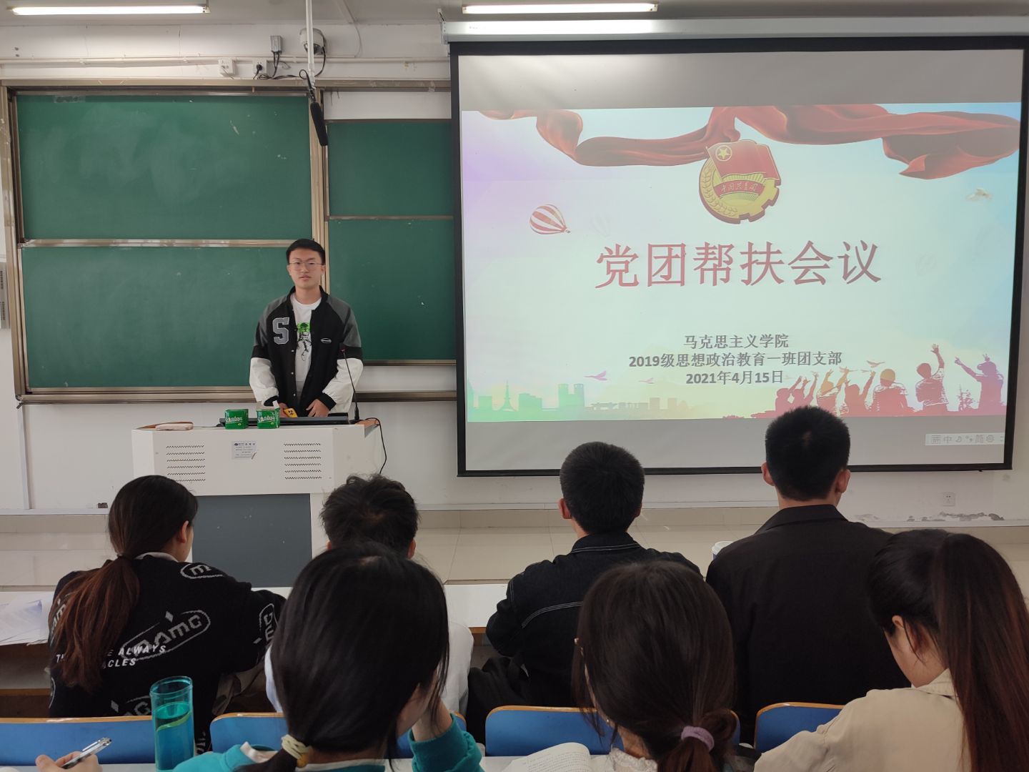 4月15日上午,金年会jinnianhuicom2019级思想政治教育一班在社科楼514教室召开党团帮扶会。2019级思想政治教育一班全体成员参加本次会议,会议由团支书贾子漪主持。