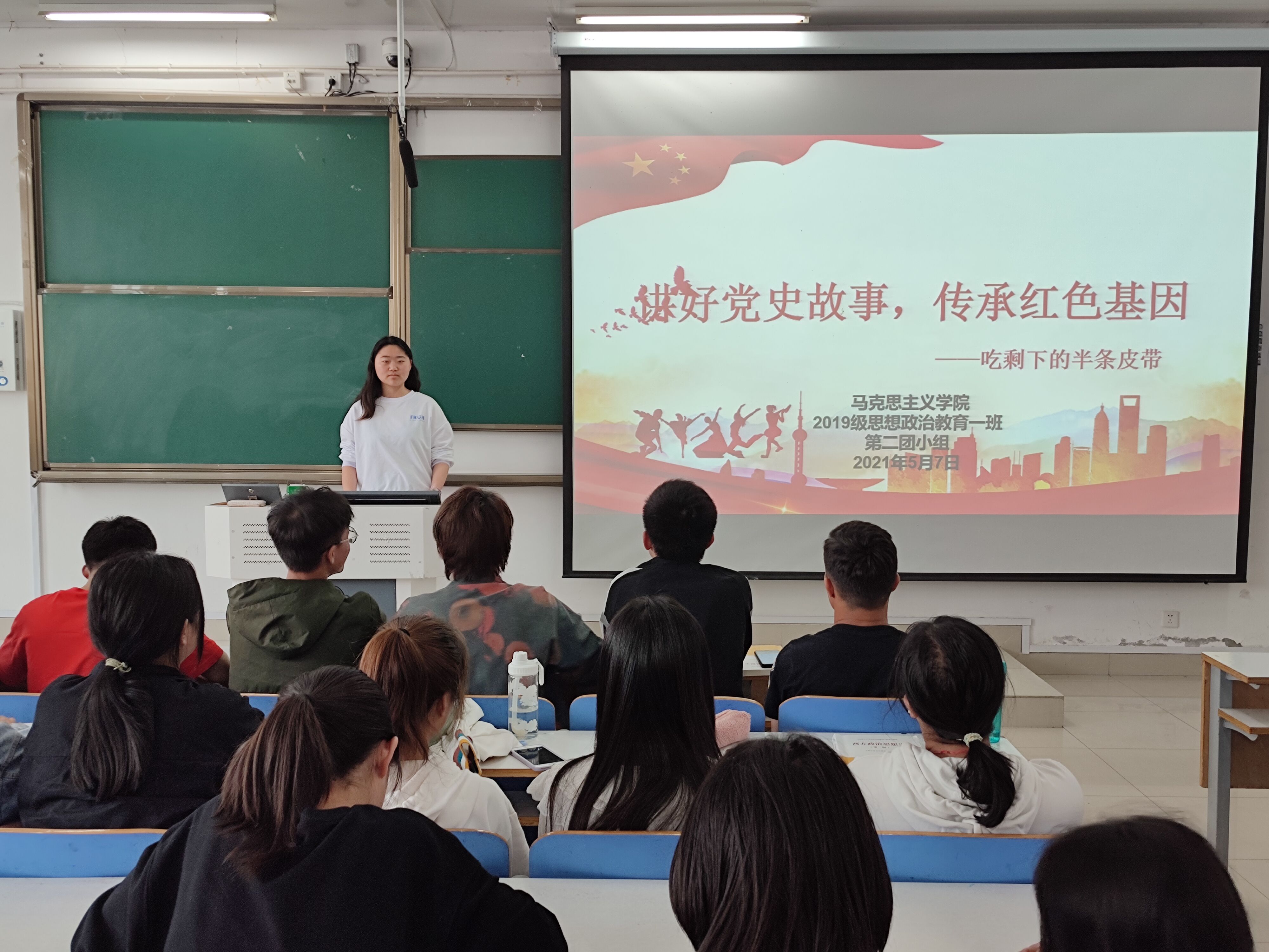 5月7日上午,金年会jinnianhuicom思想政治教育一班第二团小组在社科楼516教室开展了以“讲好党史故事,传承红色基因——吃剩下的半条皮带”为主题的团小组会议。金年会jinnianhuicom2019级思想政治教育第一团支部第二团小组全体成员参加本次会议。会议由第二团小组组长程子硕主持。