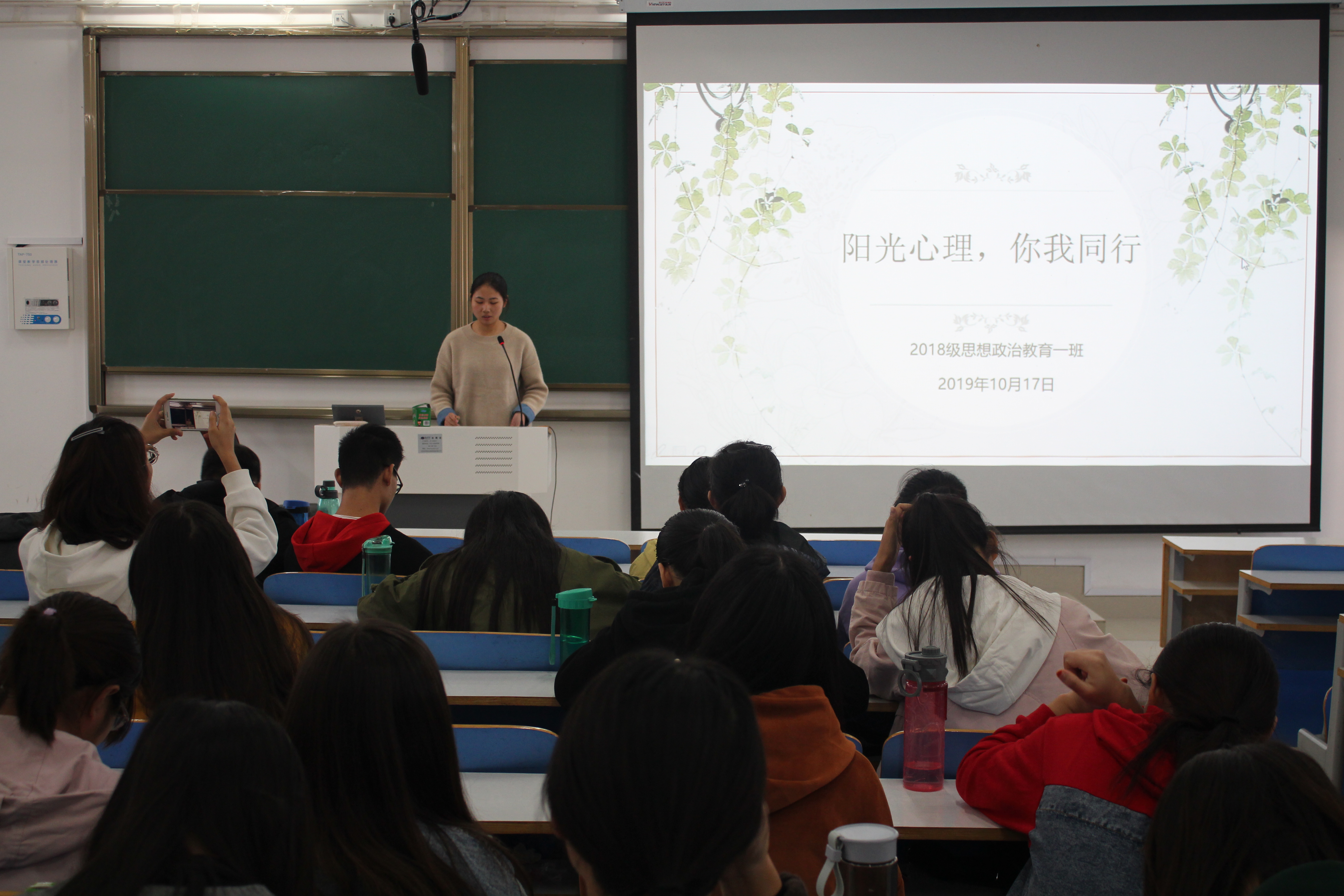 为提升同学们的心理调节能力,培养良好的心理品质,10月17日上午,金年会jinnianhuicom2018级思想政治教育一班在社科楼515教室顺利开展“阳光心理,你我同行”心理健康班会。团委老师曹菁菁和2018级全体同学共同参加了此次会议。会议由生活委员葛梦想主持。