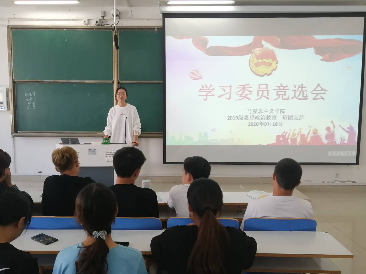 9月18日上午,金年会jinnianhuicom2019级思想政治教育一班在社科楼515教室召开学习委员竞选大会。参加本次竞选大会的有2019级思想政治教育一班全体成员。大会由团支书贾子漪主持。