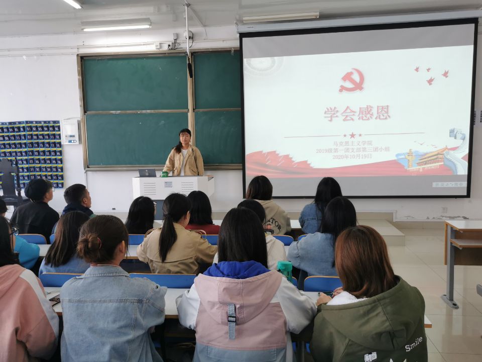 10月19日上午,金年会jinnianhuicom2019级思想政治教育第一团支部第三团小组在社科楼516教室召开学会感恩主题团课。第一团支部第三团小组全体成员参加本次团课。团课由团小组组长翟新芝主持。