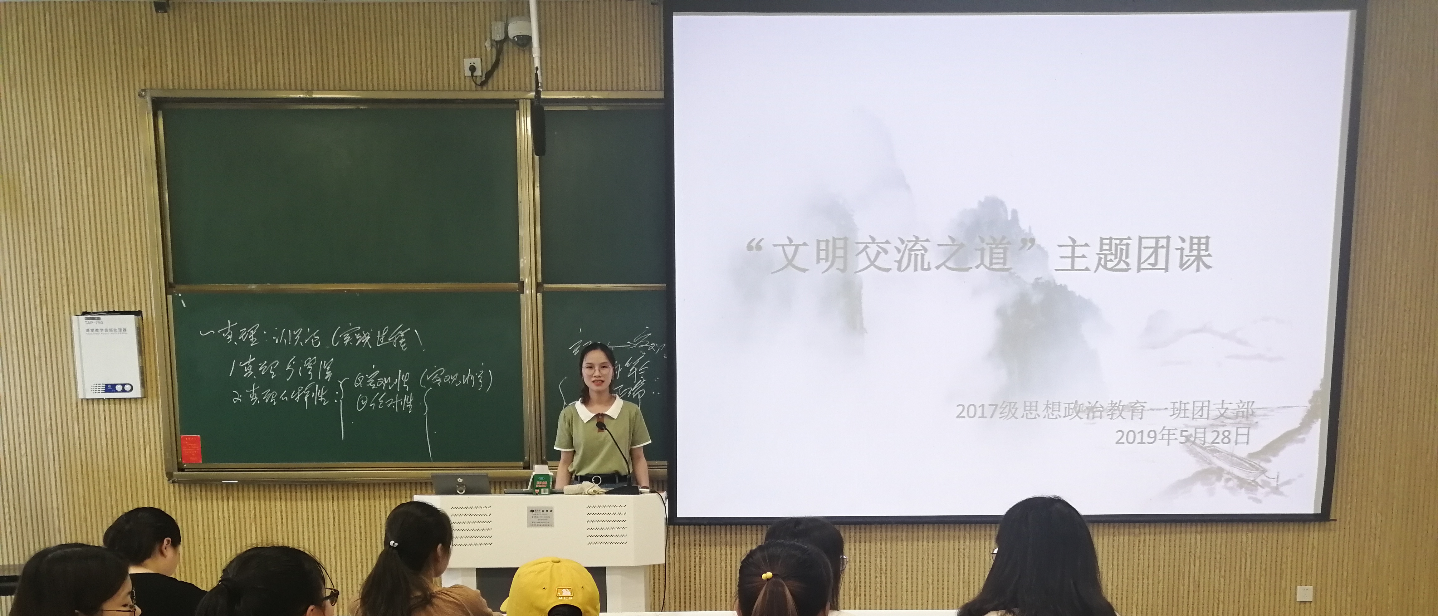 为加深同学们对亚洲文明对话大会上习近平关于文明交流思想的进一步了解,掌握文明相处相融的“中国智慧”,5月28日上午,金年会jinnianhuicom2017级思想政治教育一班组织开展了以“文明交流之道”为主题的班会。班会由团支书谢文静主持。