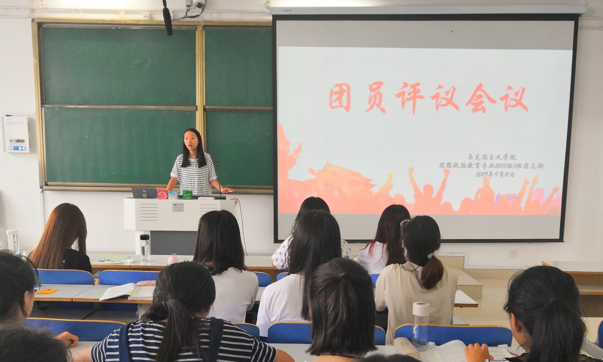 9月12日上午,金年会jinnianhuicom2018级思想政治教育一班在社科楼514教室顺利开展团员评议会。2018级全体同学共同参加此次会议。会议由团支书靳雨露主持。