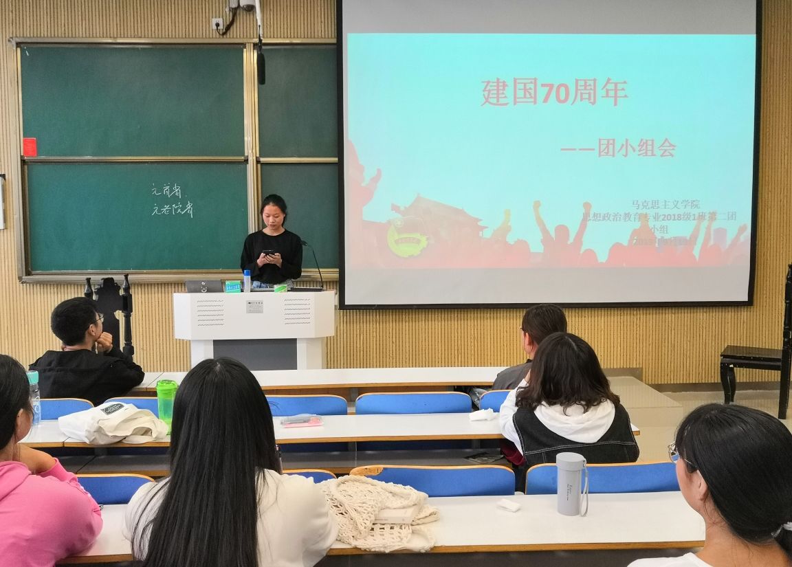 9月16日下午,金年会jinnianhuicom2018级思想政治教育一班第二团小组在社科楼515教室顺利开展“建国70周年”主题团会。第二团小组全体成员共同参加此次团会。团会由团小组成员陈璐龙主持。