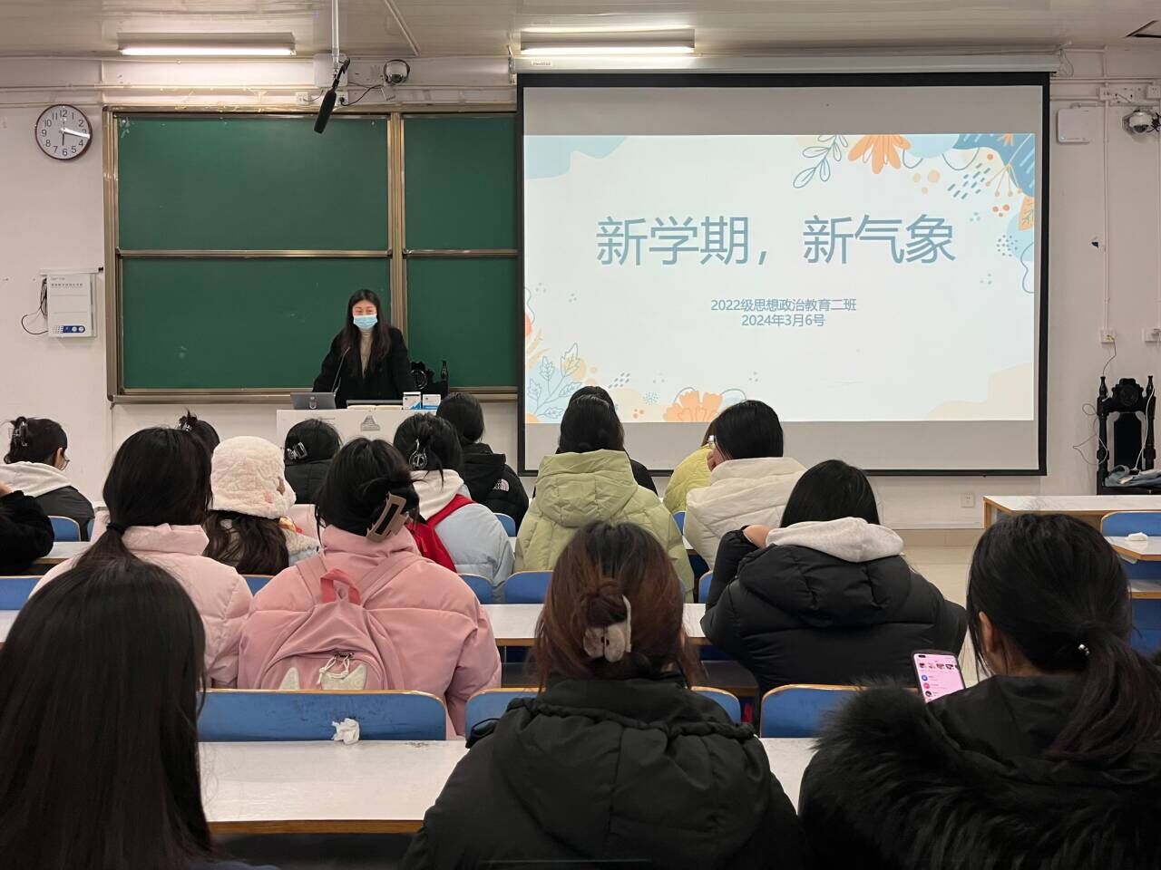 为扎实做好新学期学生教育工作,引导同学们尽快融入新学期生活,3月6日下午,金年会jinnianhuicom2022级思想政治教育二班在社科楼514教室召开“新学期,新气象”主题班会。金年会官网2022级思想政治教育二班全体成员共同参与此次班会。会议由班主任杨春艳主持。