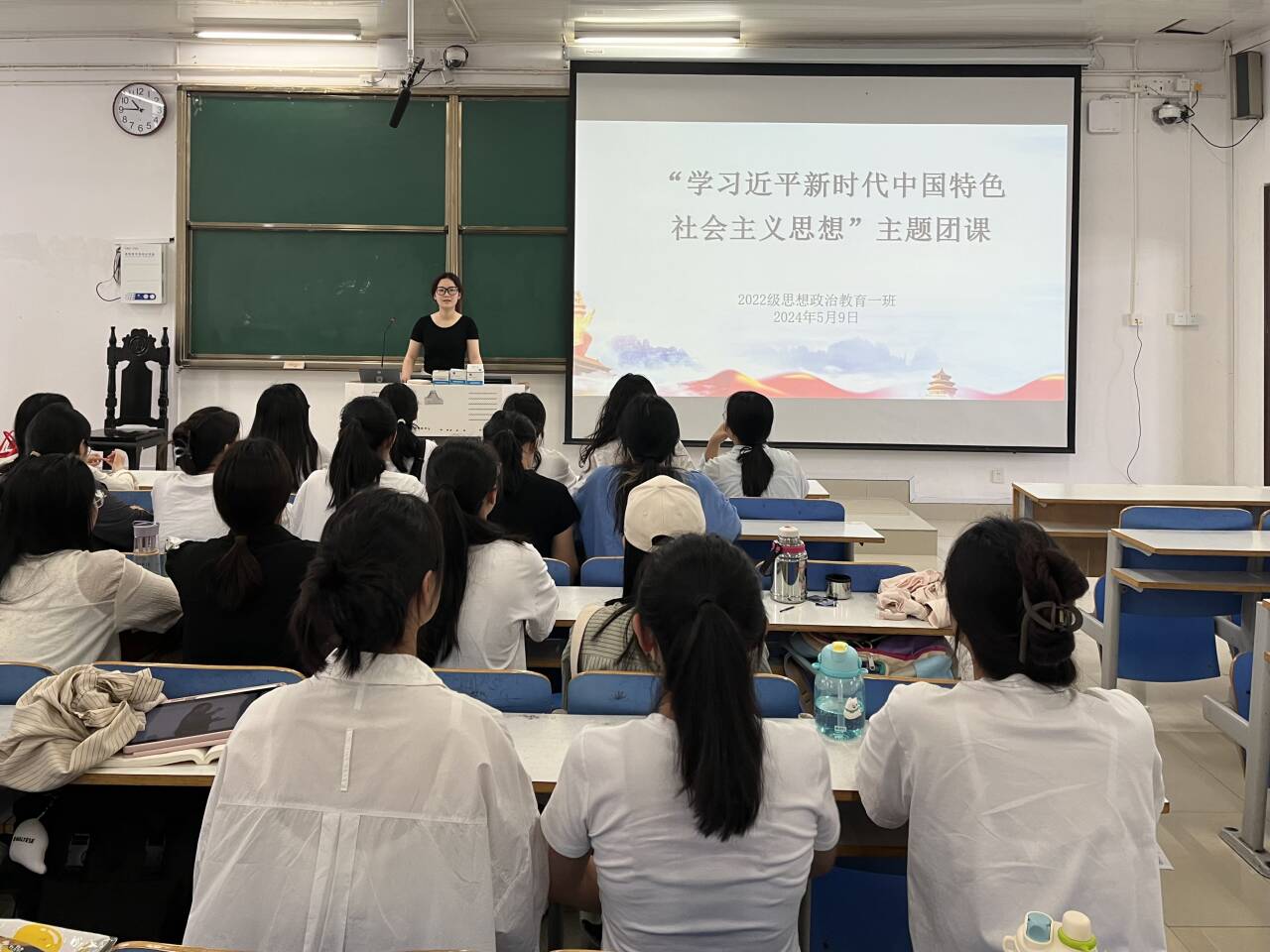 为学习贯彻习近平新时代中国特色社会主义思想主题教育,5月9日上午,金年会jinnianhuicom2022级思想政治教育一班在社科楼514教室开展“学习习近平新时代中国特色社会主义思想”主题团课,金年会官网2022级思想政治教育一班全体同学共同参与本次团课。团课由团支书李佳茹主持。