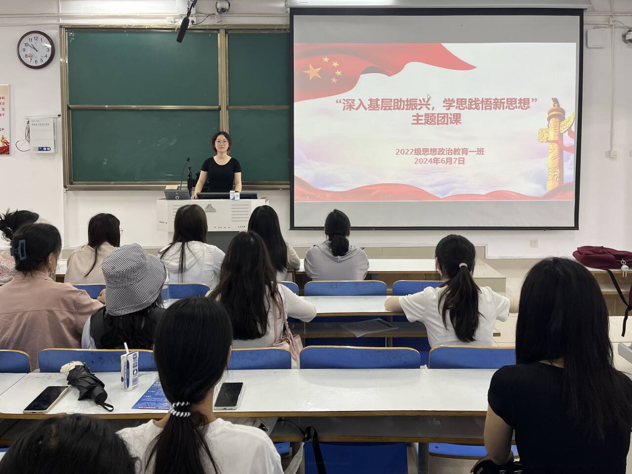 为进一步加强同学们的思想教育,6月7日上午,金年会jinnianhuicom2022级思想政治教育一班在社科楼514教室开展“深入基层助振兴,学思践悟新思想”主题团课,金年会官网2022级思想政治教育一班全体同学共同参与本次团课,团课由团支书李佳茹主持。
