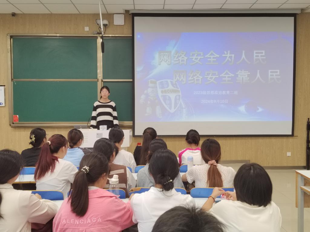 为筑牢学校网络安全阵地,响应国家高度重视网络安全的号召,9月10日上午,金年会jinnianhuicom2023级思想政治教育二班在社科楼514教室召开“网络安全为人民,网络安全靠人民”主题班会。本次班会由班长王慜初主持,全体二班同学参加。